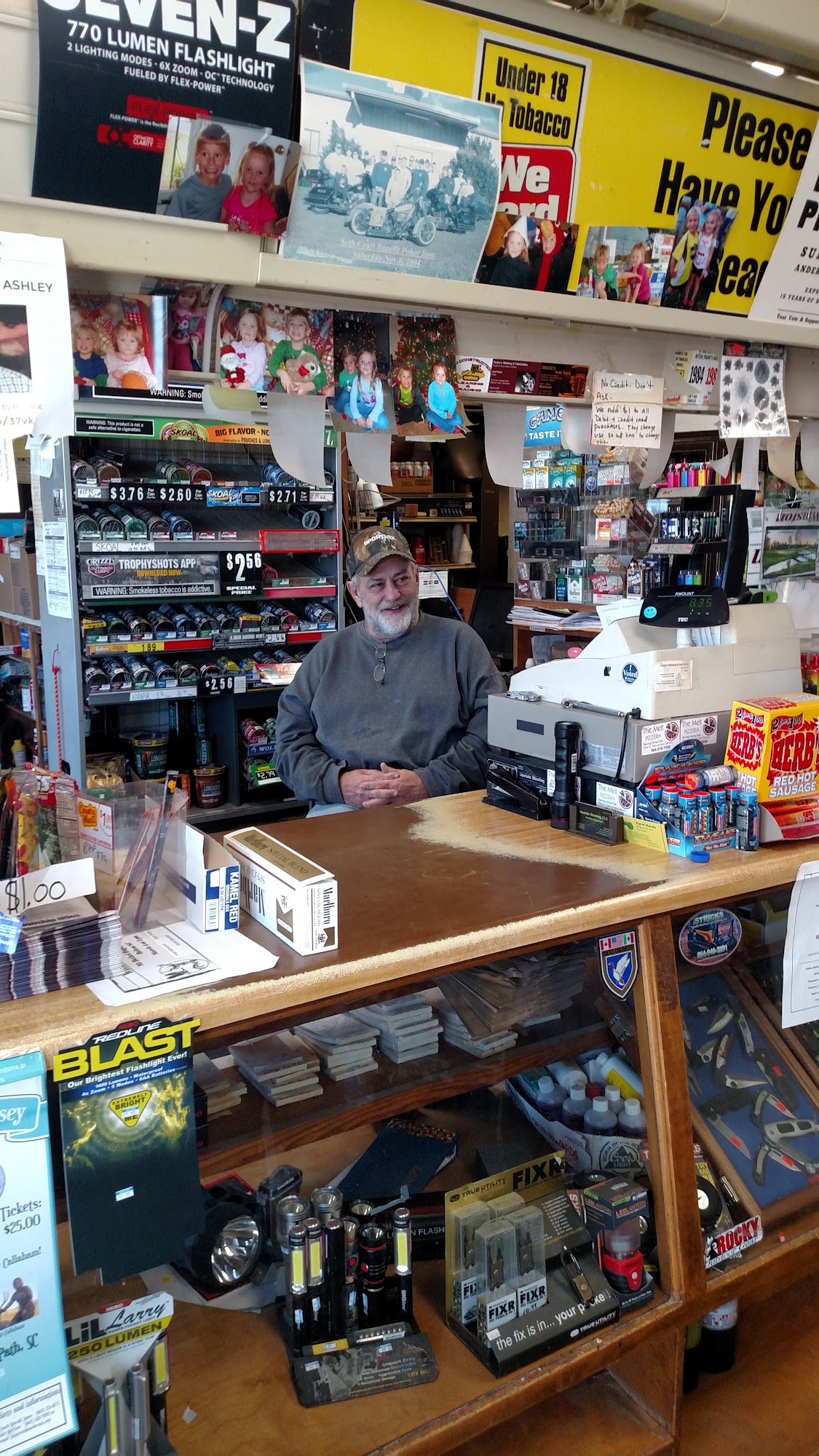 They gots non ethanol gas; feed, beer and wine, snacks,drinks and smokes from beef jerky to chicken feed. Ammo and hunting/fishing licenses. Worms, crickets, minnows for bait. This place is a small town business with good honest people you can trust.