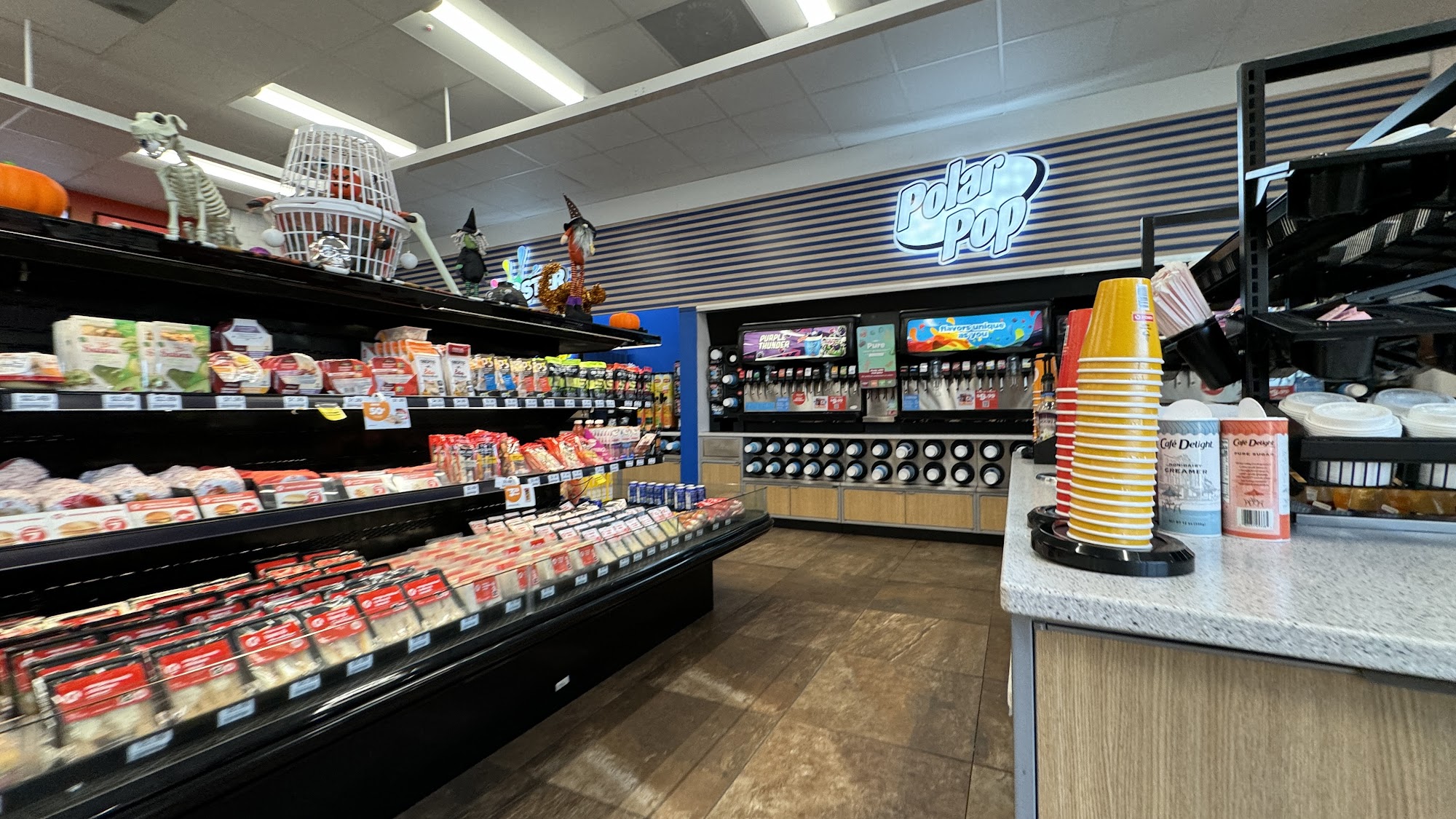 Quick in and out! Great donuts, tasty hot dogs, drinks and snacks galore.