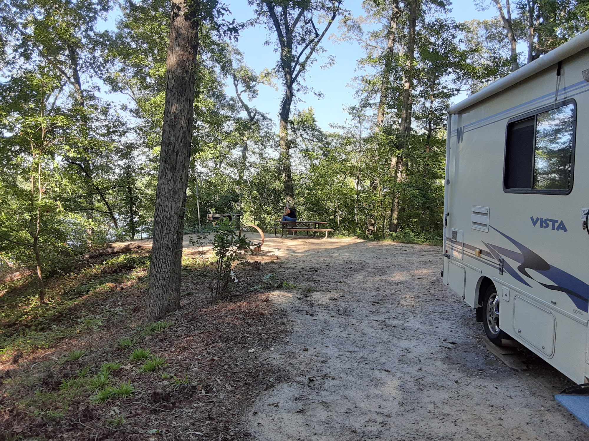 Nice and quiet camping area. Beautiful sunsets. Plenty of RV parking or tent spots. Nice beach, boat lunch, showers, bathrooms.