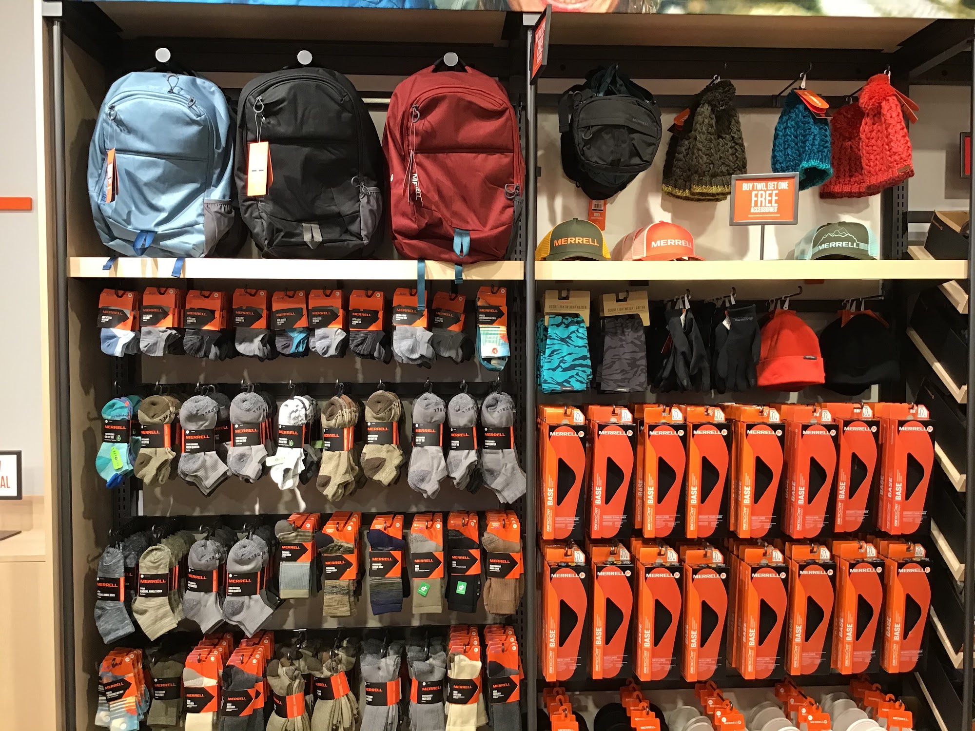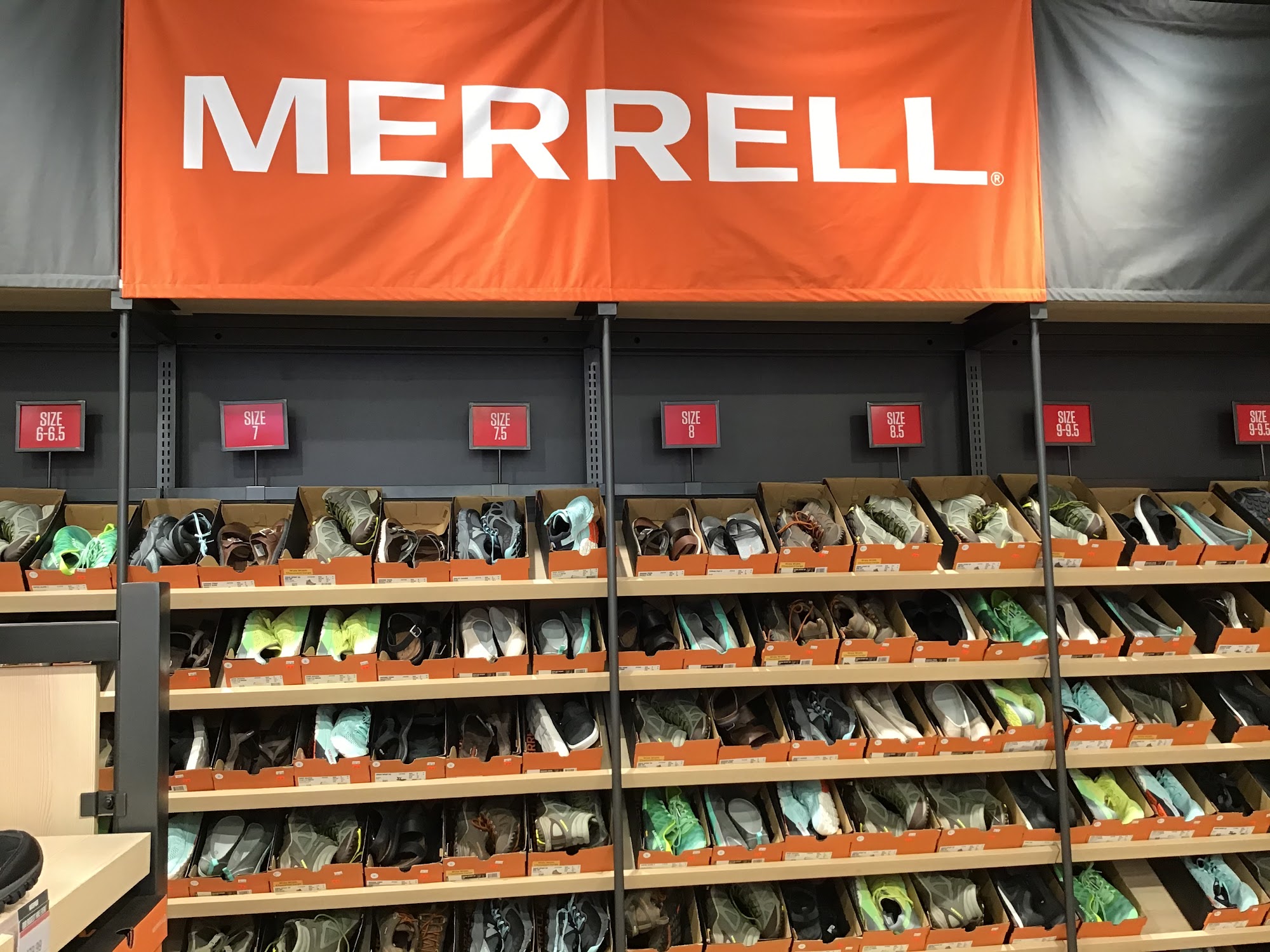 Outlet store offering ongoing specials on comfortable Merrell shoes.