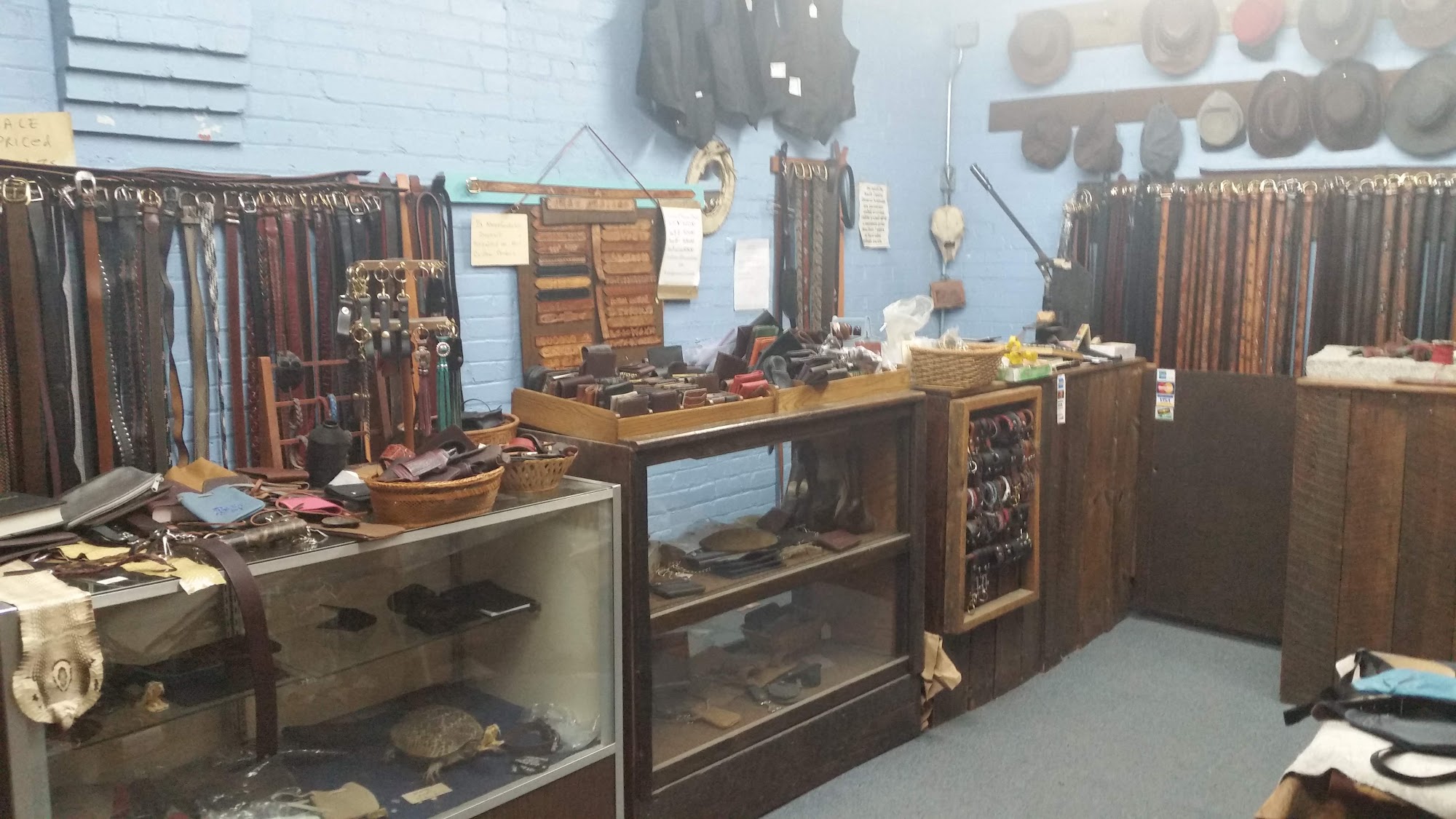 There great, and you can go own line and order. Things like leather hats, money clips, change purses, belts, and plenty more.