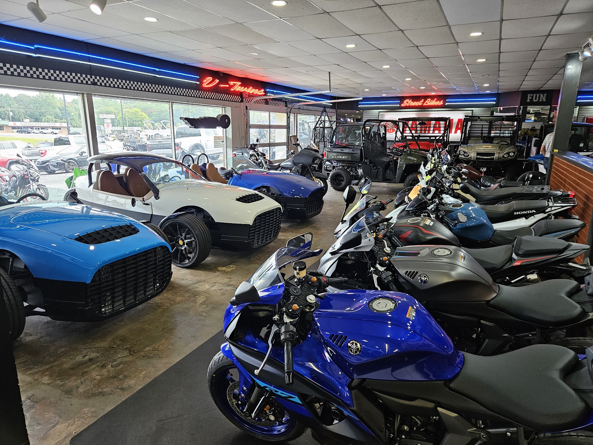 Lot and lots of toys! Good place to buy, nice people, in an out real quick. If you got questions they got the answer. I bought a 2025 Kawasaki Brute Force 450 from here. Happy it's on my property now 😉🎅
