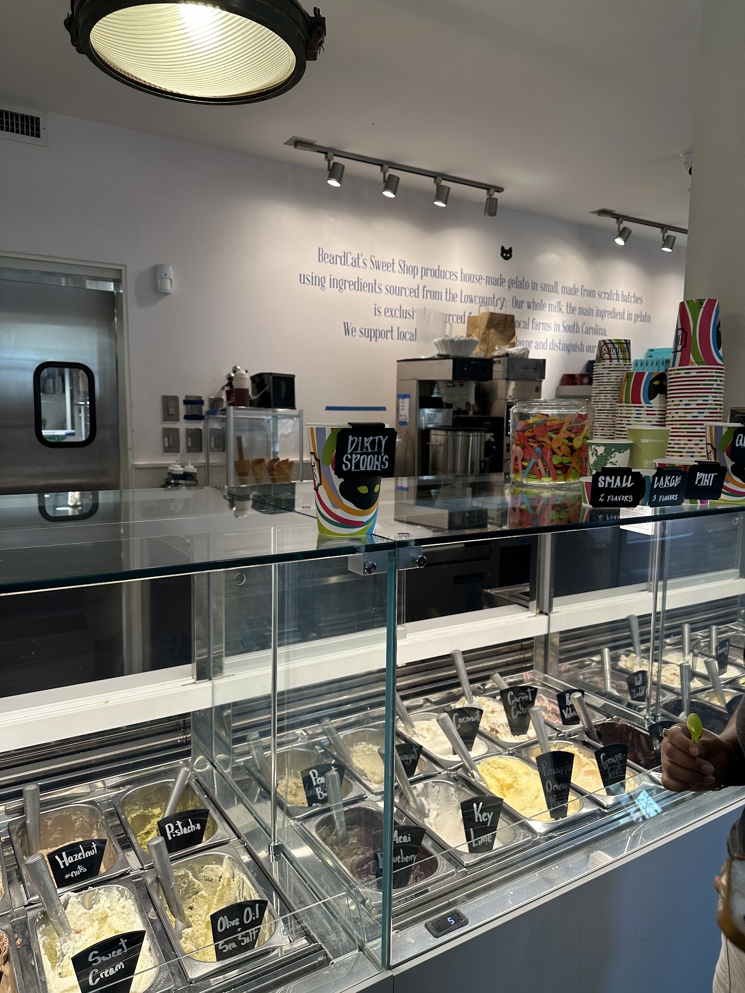 Beardcat's Sweet Shop offers a delightful ice cream experience with its wide range of rich and creative flavors, including the beloved olive oil and sea salt. The cozy atmosphere and friendly staff create a welcoming environment, making it a popular destination for both locals and tourists. The shop features individual scoops per flavor, which helps prevent cross-contamination, making it a good choice for those with allergies. Customers praise the quality of the gelato, ice cream, cakes, pies, and cookies, and many enjoy the gluten and dairy-free options available. Some find the prices a bit high for the small servings, but the unique flavors, like pistachio and Biscoff almond, make it worthwhile. The shop also sells some swag, including t-shirts, candles, and dried pasta, adding to its charm. While the ice cream is generally well received, the texture can sometimes be softer than expected, especially in cones that may break easily. Despite this, Beardcat's remains a must-visit spot for anyone craving a sweet treat, especially on a warm summer day.