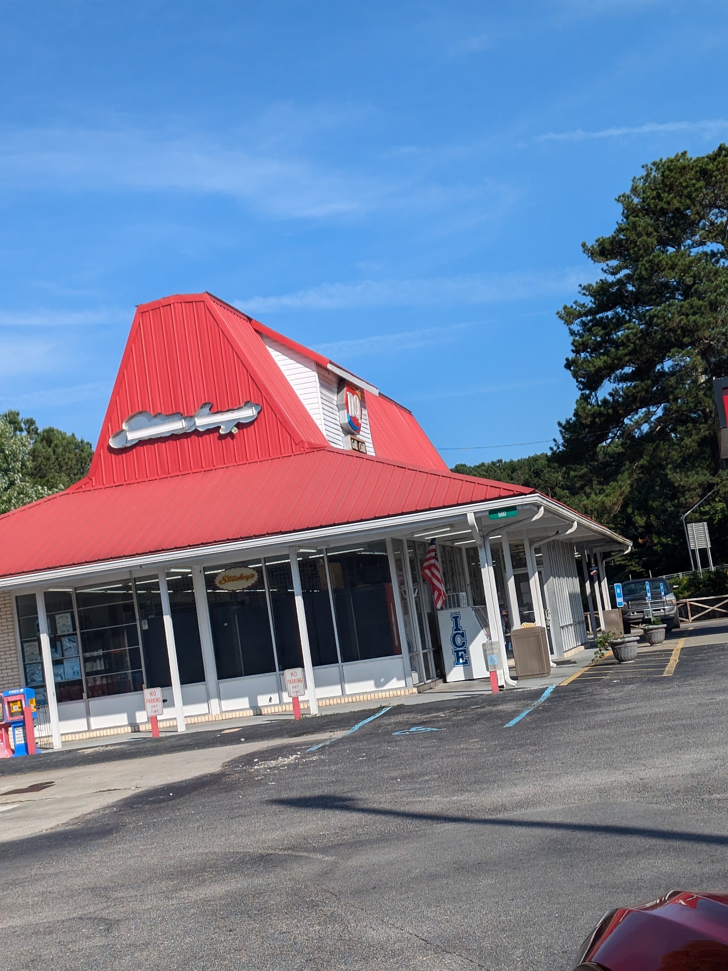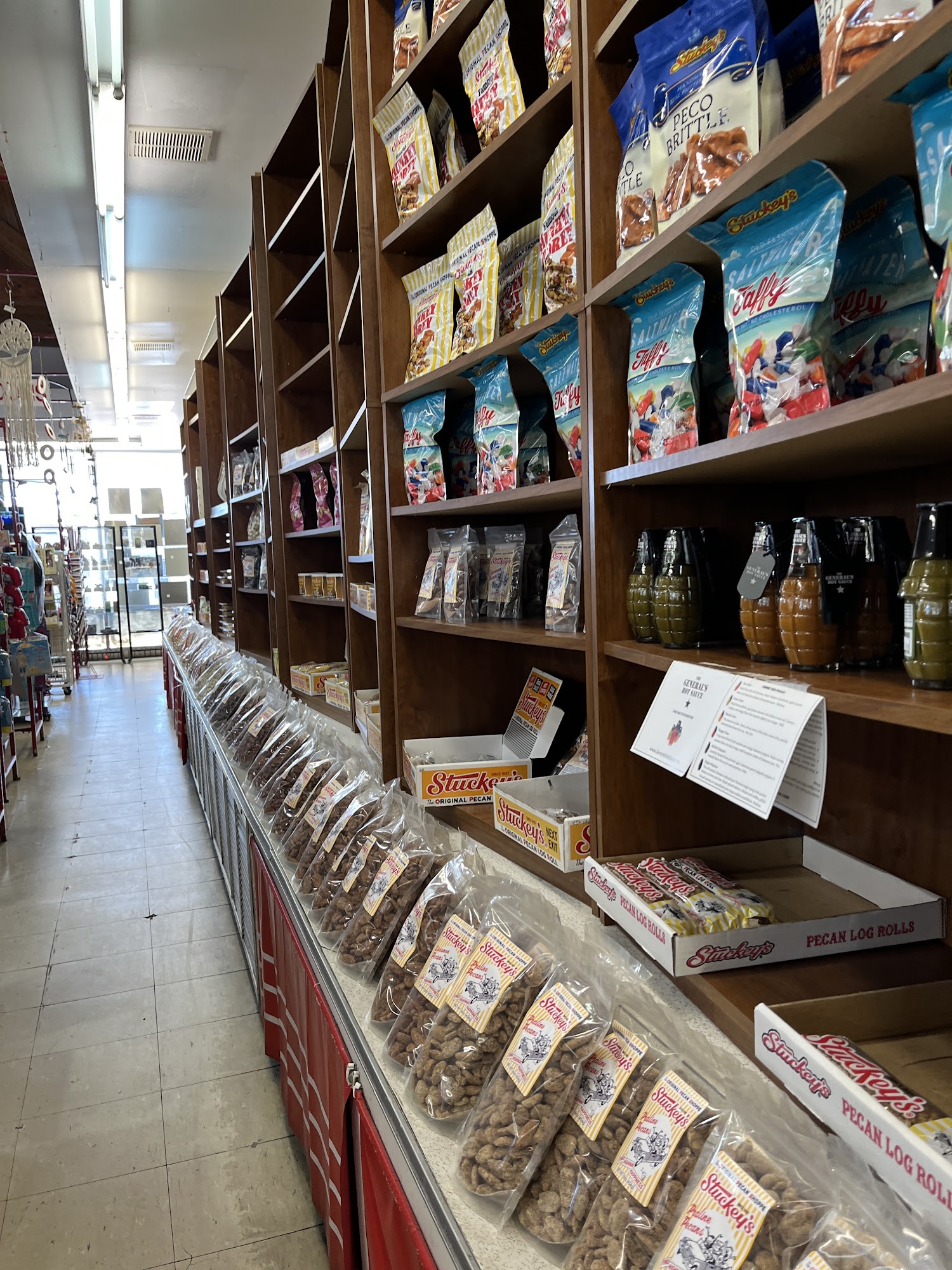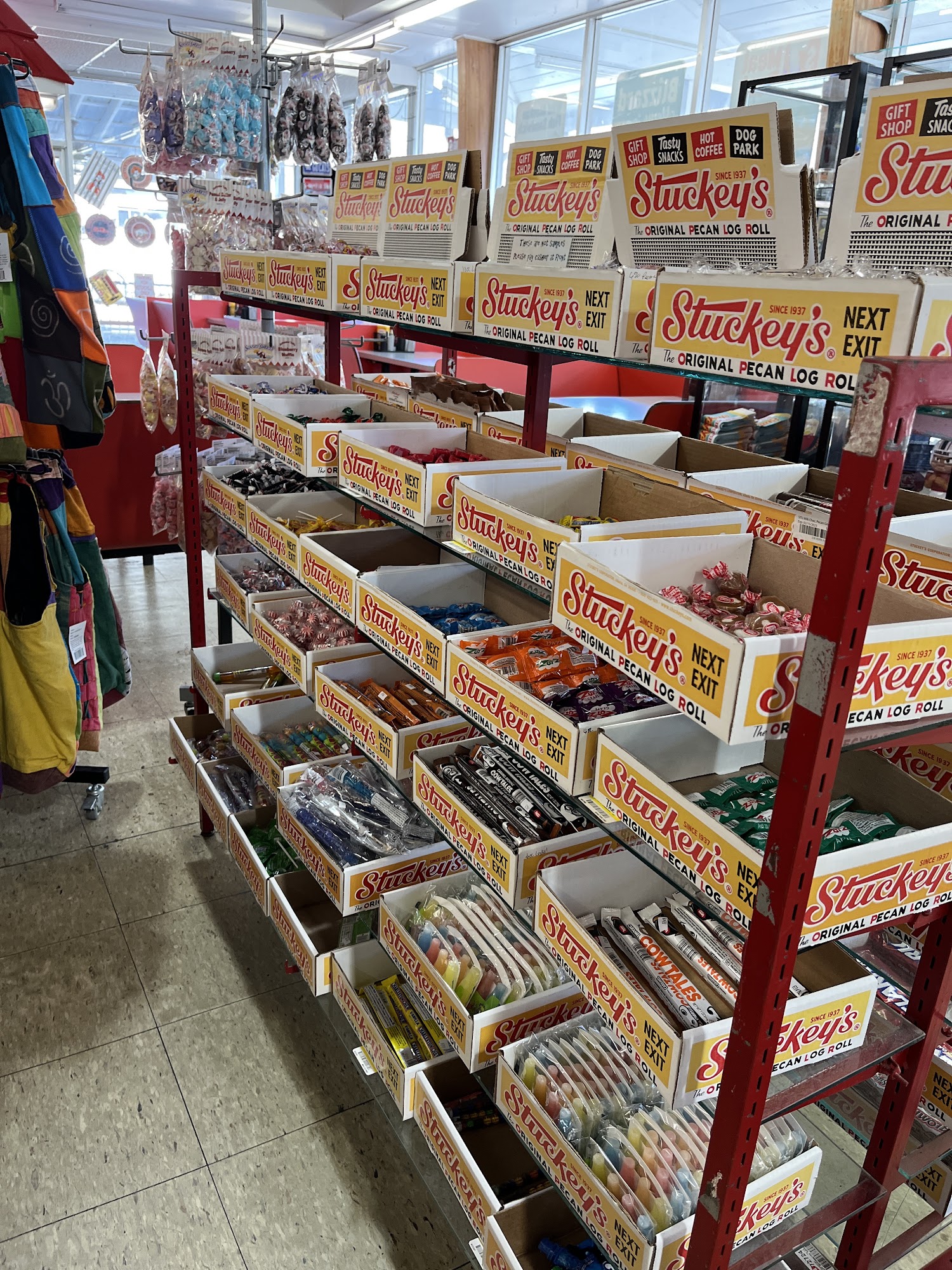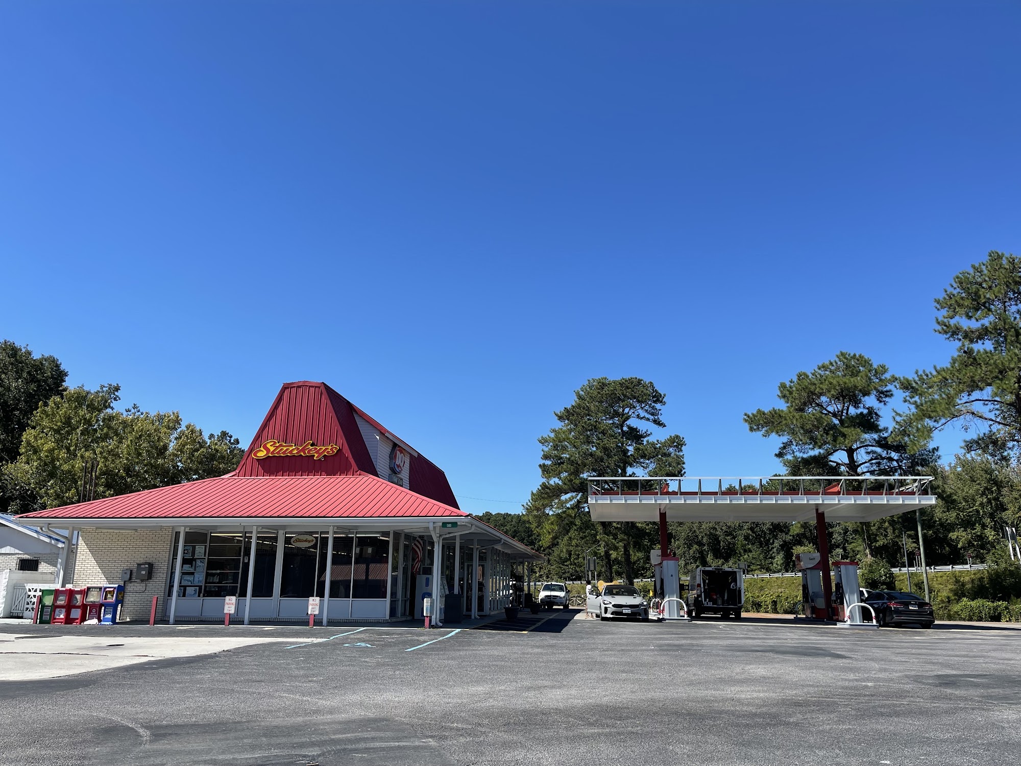 Texaco is a convenient stop offering a variety of services for travelers. It is known as a good place for local ice cream and food, with popular items like delicious chicken strips, excellent hamburgers, and over-the-top fries. Visitors often find the food satisfying, and many go there frequently. The location features a large parking lot and a fenced-in dog park, making it a good spot for pet owners to give their dogs a break. It also provides Tesla Superchargers for electric vehicle charging, making it a practical stop for drivers with EVs. The gift shop offers a decent selection of souvenirs, and the bathrooms are clean, though small with tiny stalls. The business has a nostalgic, time capsule feel, especially with its wooden cathedral ceiling, making it one of the last true Stuckey's on I-95. It is appreciated for maintaining its classic charm, though some find it needs better lighting at night for security. Visitors note that wait times can occasionally be long at the DQ or check-out, but overall, staff are friendly. Stray cats are often seen around the area, but they tend to be scared of people. Overall, Texaco is a well-liked stopping point for snacks, gas, and a touch of nostalgia.