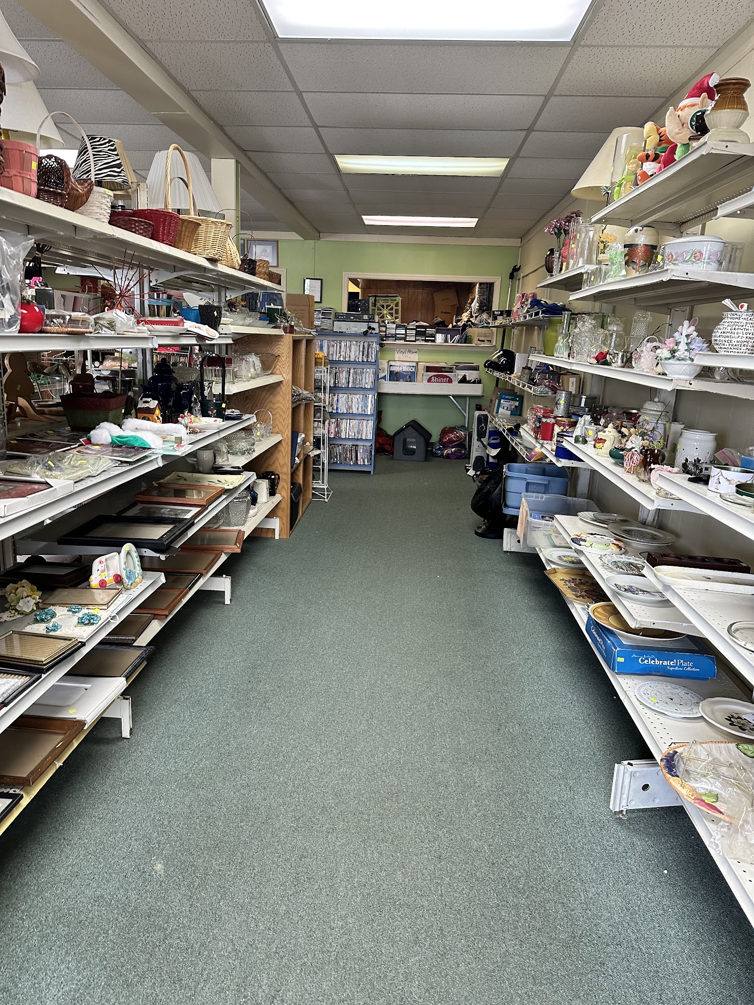 Great selection of home decor, prints, lamps, furniture, dishes, jewelry and lots of other cute knick knacks. Also a huge selection of books, dvd's, old records and lots of other nostalgic stuff. Go check them out.