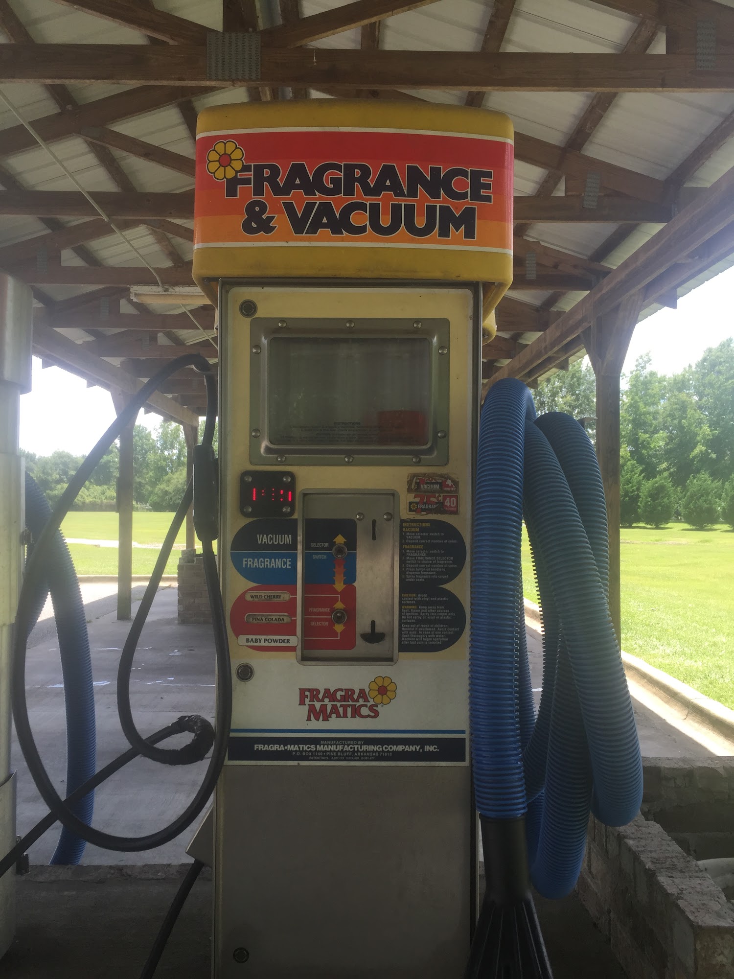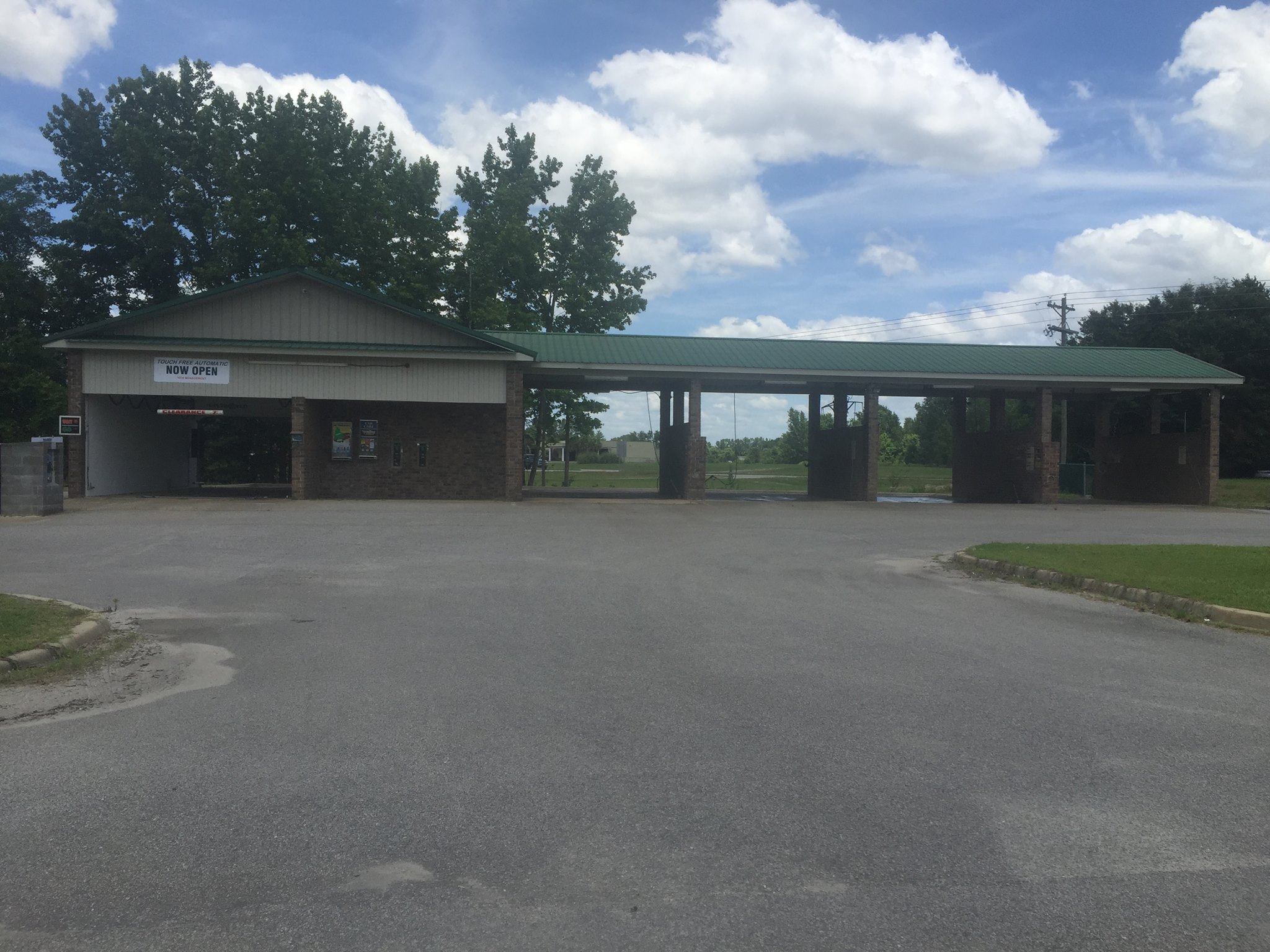 Self Service Car Wash with a washworld high velocity touchless automatic. There are 4 self service bays, 6 vacuums, 1 fragrance vacuum and 1 shampoo/carpet cleaner vacuum. Air machine is at front of building along with vending machines (armor all, black jack, towels, etc.) Credit cards are accepted!