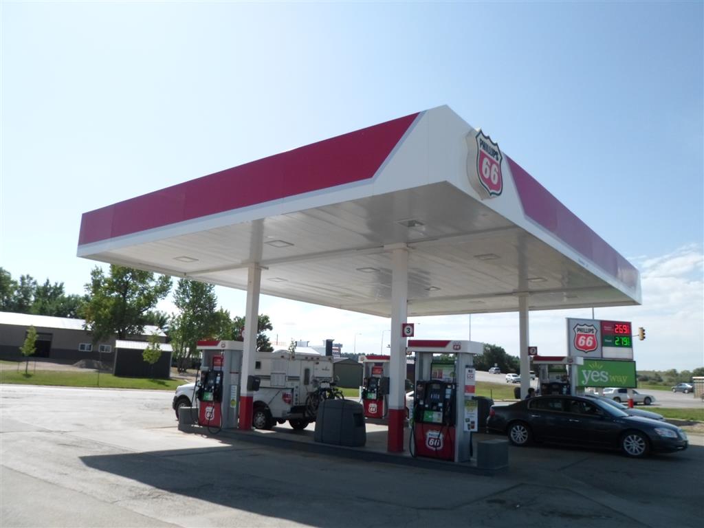 This gas station would be out of business if it didnt have such a convenient location in town.