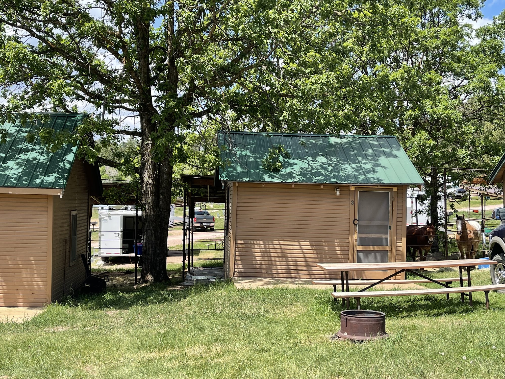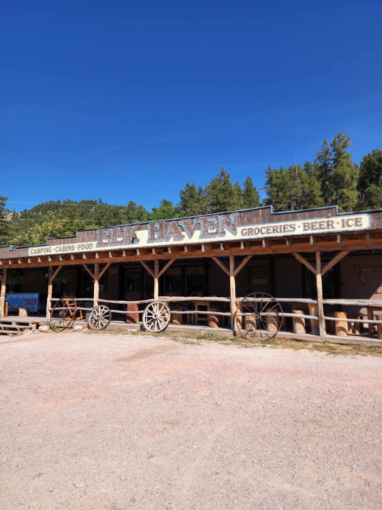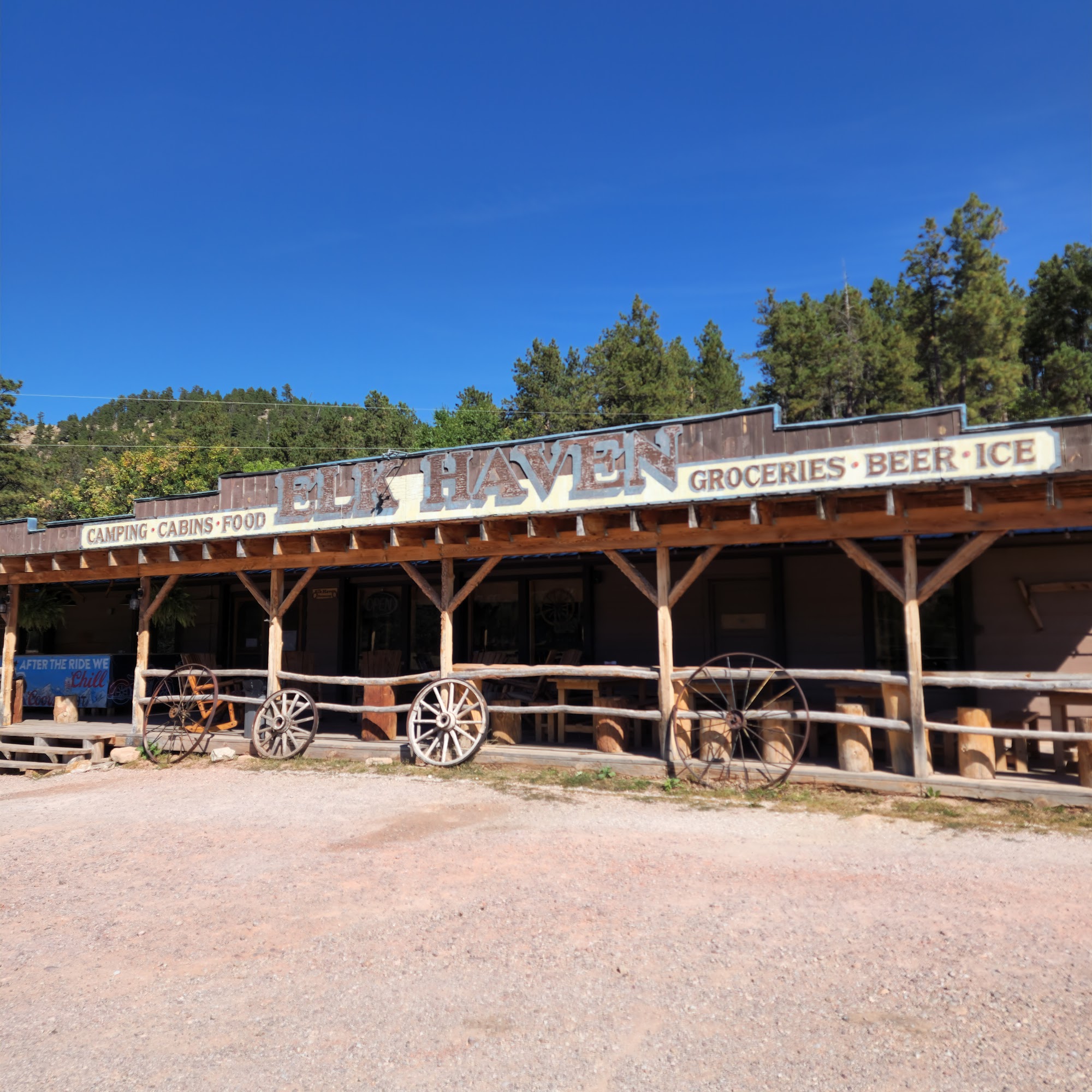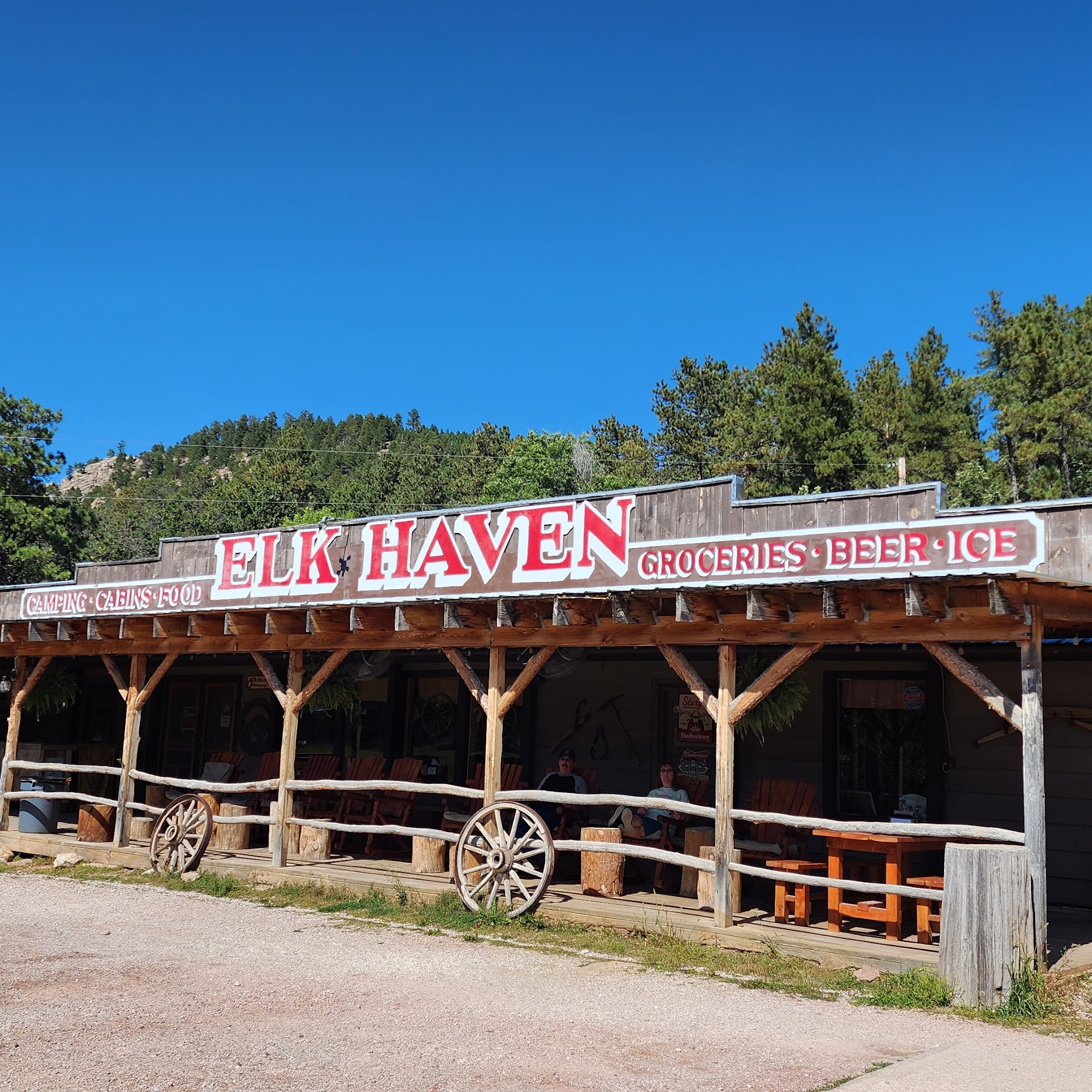 Elk Haven Horse Camp is a charming campground located in the picturesque Black Hills of South Dakota, specifically designed for horse owners and their equine companions. The camp features 22 sites, 10 cabins, and various amenities, including a retail store and a small cafe. With the best porch view on Iron Mountain Road, it offers a stunning backdrop for outdoor activities. Guests consistently praise the warm hospitality of the owners, who are noted for their friendliness and helpfulness. The campground provides excellent access to scenic trails, including unique opportunities to ride to Mt. Rushmore. Many visitors appreciate the clean facilities, including showers and a full coin laundry. The camp is also known for its delicious food, particularly the smoked ribs and pulled pork sandwiches, which guests describe as amazing. The relaxed atmosphere, rustic appeal, and horse-friendly environment make Elk Haven an ideal retreat for those seeking a memorable camping experience. Reviewers highly recommend this campground for its beautiful scenery, great food, and welcoming hosts, making it a standout choice for both horse enthusiasts and nature lovers alike.