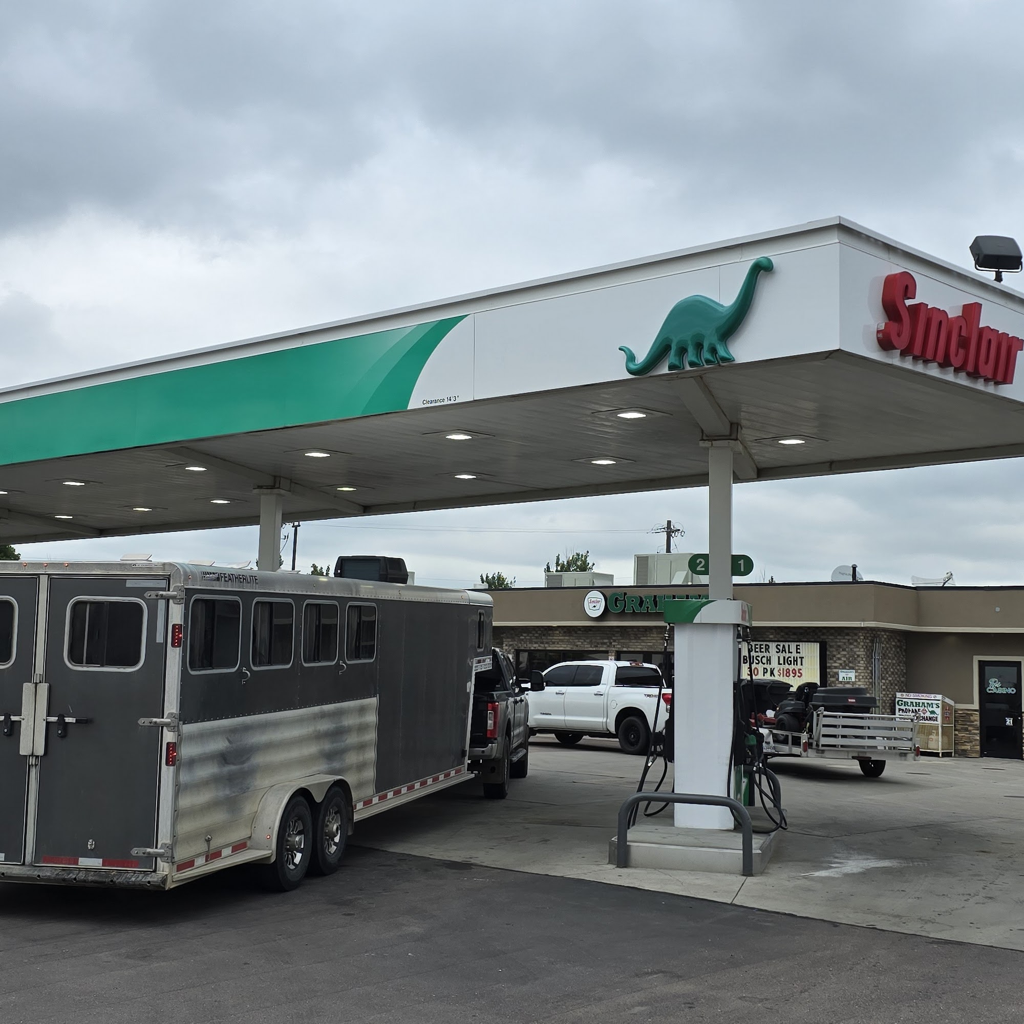 Graham’s Sinclair is a clean and convenient gas station and store. The store has a good selection of snacks and drinks, and its restrooms are very clean. The entrance is handicap accessible, making it easy for everyone to enter. Customers appreciate the friendly attendants and the overall cleanliness of the store. Many describe their fuel pump experience as smooth and straightforward, with quick payment options and easy gas filling. Some customers choose to pay at the pump, noting that the pumps are somewhat clean and functional, with decent prices compared to other stations in the area. While the pumps are not spotless, they are kept in good condition and work without issues. The store itself is a positive part of the experience, and visitors say they would stop again if in the area. Overall, Graham’s Sinclair offers a friendly, clean, and convenient stop for fuel and snacks, making it a reliable choice for travelers.