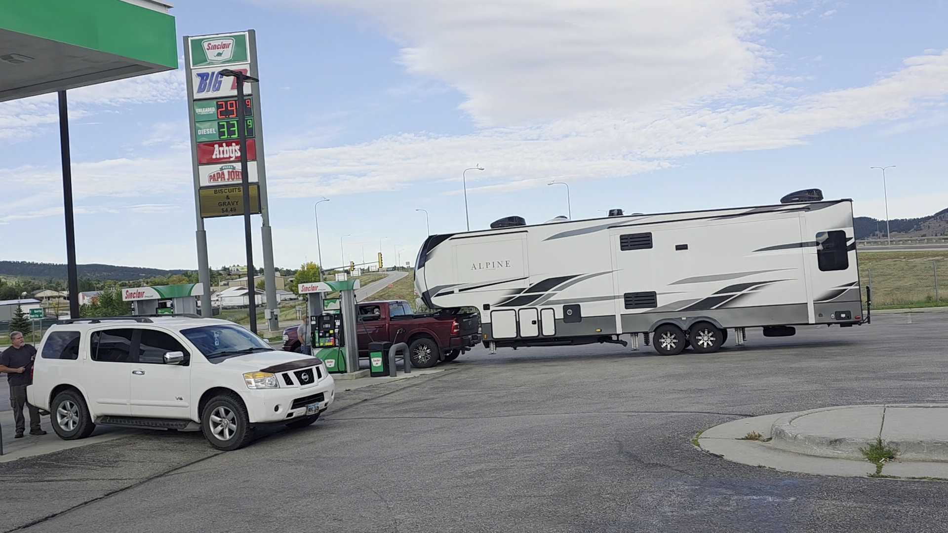 Traveling 90 East, easy off and on ? Diesel fuel for our 44ft class A coach with tag axle and towing truck(lots of space).