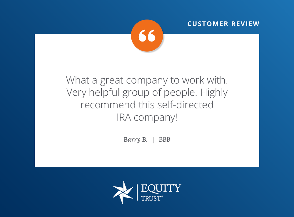 Equity Trust Company is a financial services company that enables individual investors and financial professionals to diversify investment portfolios using alternative asset classes such as real estate, tax liens, private equity, cryptocurrency, and precious metals. With 50 years of experience in the financial service industry, Equity Trust Company is the trusted custodian and administrator of $45 billion in assets in 334,000 client accounts (as of 1/1/24). Equity Trust streamlines the investment experience by offering optimized solutions, processes, and service.