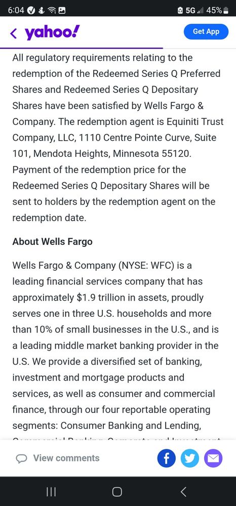 Notice of Levy been given to Wells Fargo Bank against: Equiniti Trust Company Disbursing Agent for THE TRAVELERS COMPANIES, INC.,In Amount: $23,000,000.00 Twenty Three Million Dollars and no cents, In Favor: Larry Wetzel 308 Marshall RD. Meigs, Georgia without recourse.