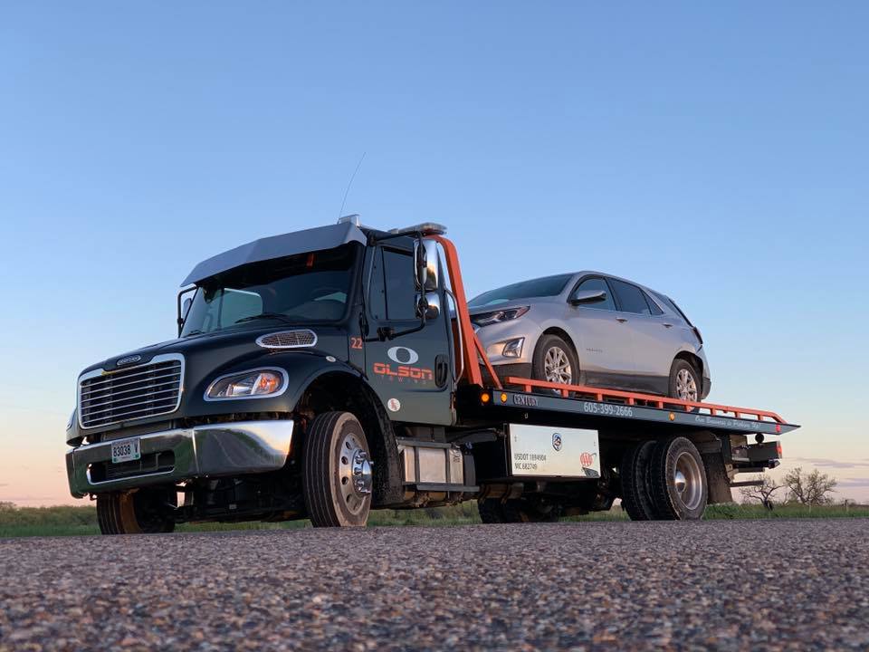 Welcome to Olson Towing, South Dakota's premier 24-hour towing service. We're proud to offer services to not only South Dakota, but also to Nebraska, Colorado, Wyoming, and Montana! We utilize advanced rollbacks, recovery trucks, and trailers. We can tow cars, vans, trucks, SUVs, heavy equipment, forklifts, Bobcats, cube vans, straight trucks, sheds, motorcycles, ATVs, and much more. You won't find a more reliable or professional towing service anywhere in the area. We offer complete roadside assistance, including jump starts, tire changes, and more. We're here for you, guaranteed!