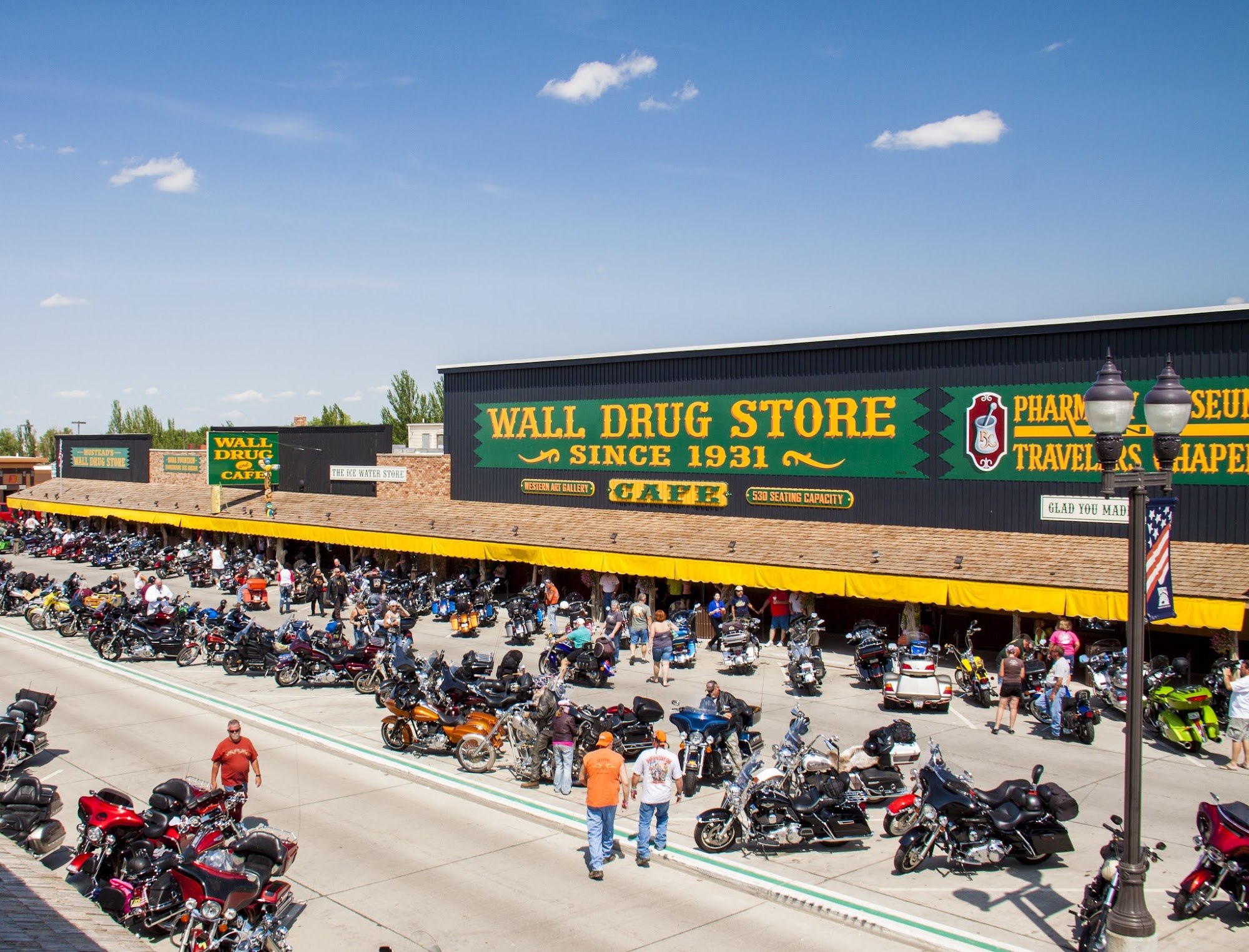 Wall Drug Store is a popular tourist destination in South Dakota, known for its fun and iconic roadside signs. Visitors find it to be a fun place with a lot to see and do, including shopping for souvenirs like magnets, photos, T-shirts, and collectibles. The store offers a variety of items at different prices, so it's good to shop around. There's a great cafe for lunch or dinner, and visitors can enjoy free ice water, which many find exciting, especially if they love Stanley or Yeti cups. The old western town area has interesting sights and affordable clothing options. Though it can be crowded and considered a tourist trap, many people find it worth the visit for its fun atmosphere and friendly staff. Some areas may be closed during off-season times, but overall, Wall Drug Store remains a fun, must-visit spot, especially for those passing through South Dakota.