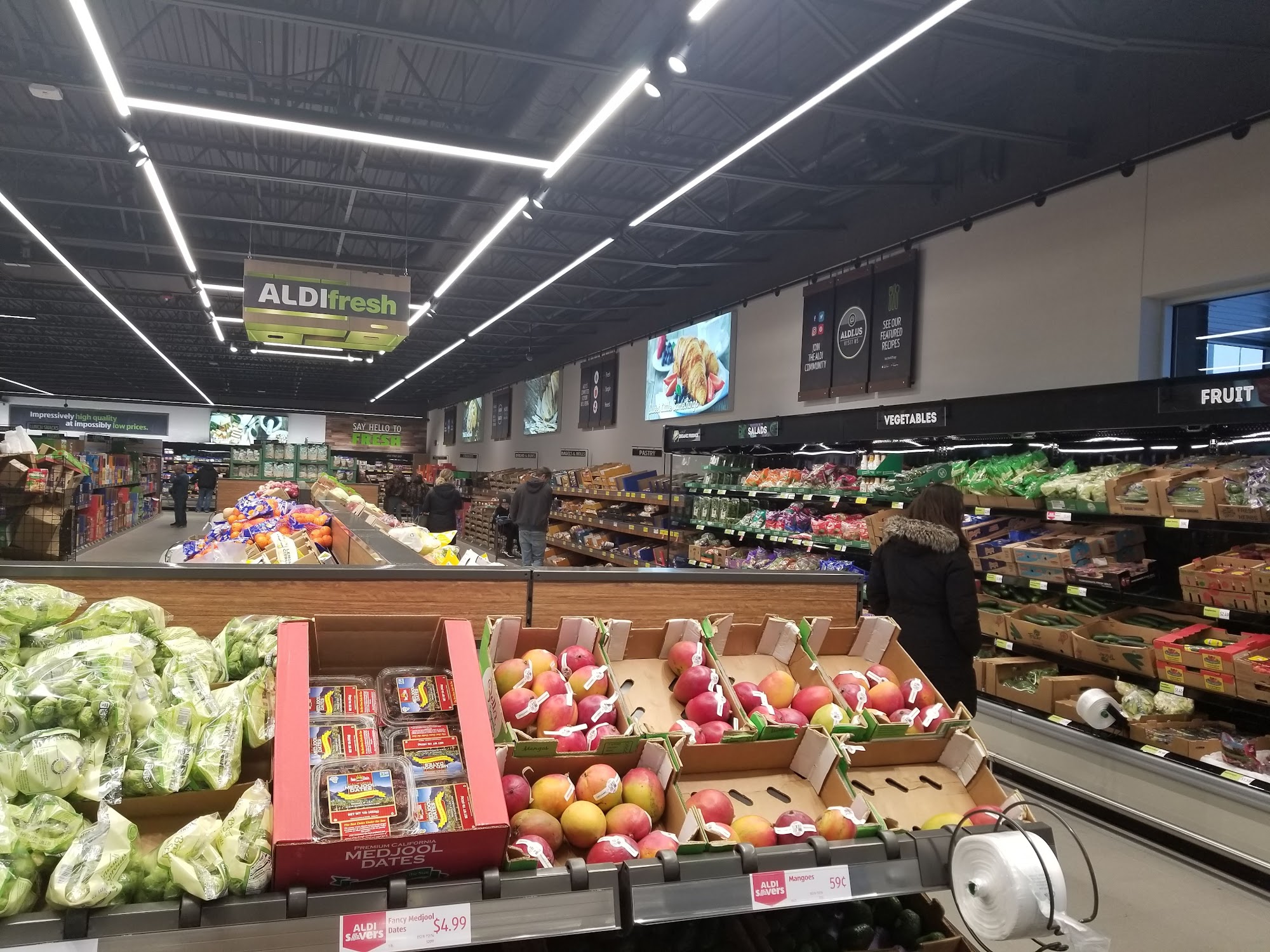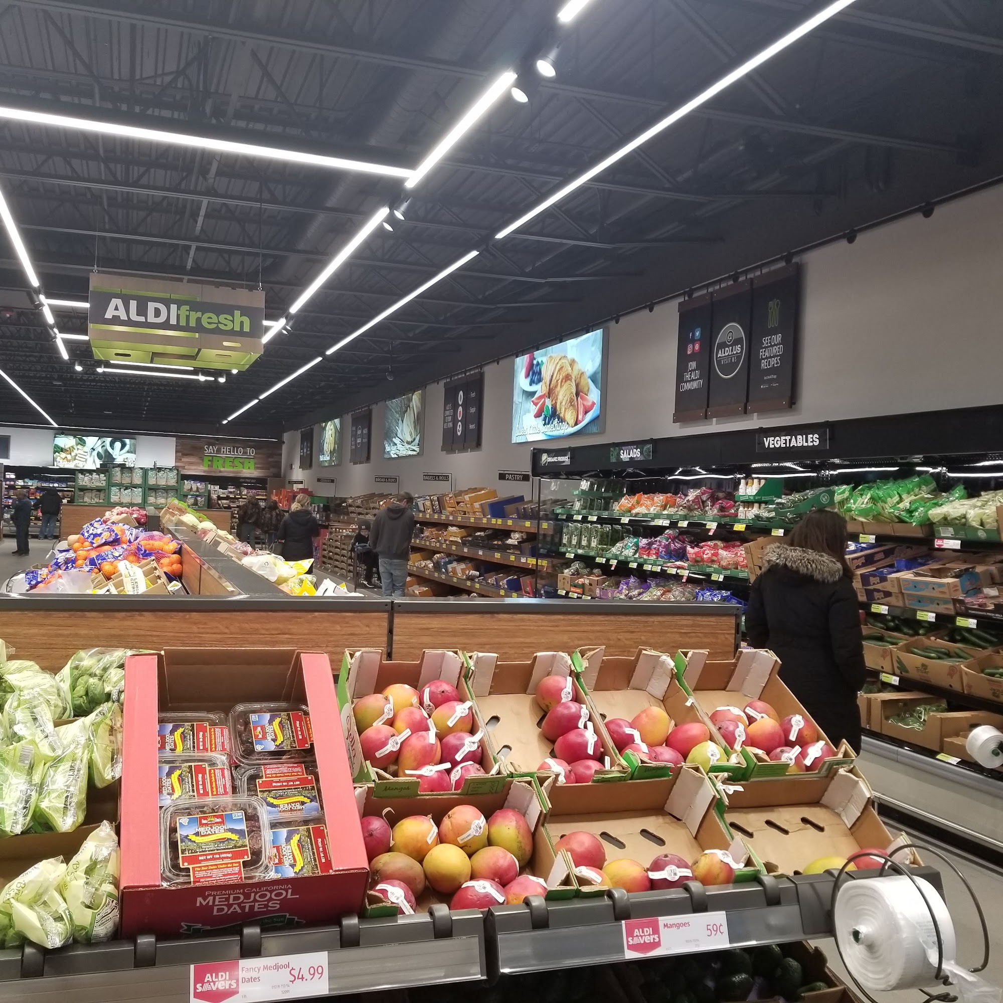 ALDI is a grocery store that offers everyday low prices on quality groceries and home goods. Whether you're looking for fresh meat, seafood, produce, deli items, baked goods or frozen treats, ALDI has great options at affordable prices. They also carry home goods and limited-time items. Customers can order online for curbside pickup or delivery. Shoppers appreciate ALDI's good prices and ability to get almost everything they need in one stop. Many ALDI store brand items use natural ingredients instead of chemically-derived dyes, making them a good option for those with autoimmune conditions. The fresh fruits and vegetables are of great quality and price. ALDI also sometimes carries European foods, allowing for cultural experiences. One fun aspect of shopping at ALDI is discovering the design on the quarter you get back after using a cart. Customers have even found rare quarters this way. Overall, ALDI is described as a great little shop with a lot to offer - healthy foods, small cultural experiences, and the quarter surprise. While some shelves may be missing items at times, the staff is very helpful. Customers in Brookings, South Dakota are glad ALDI has finally come to their state, praising the friendly staff, good produce, bread and sandwich meats.
