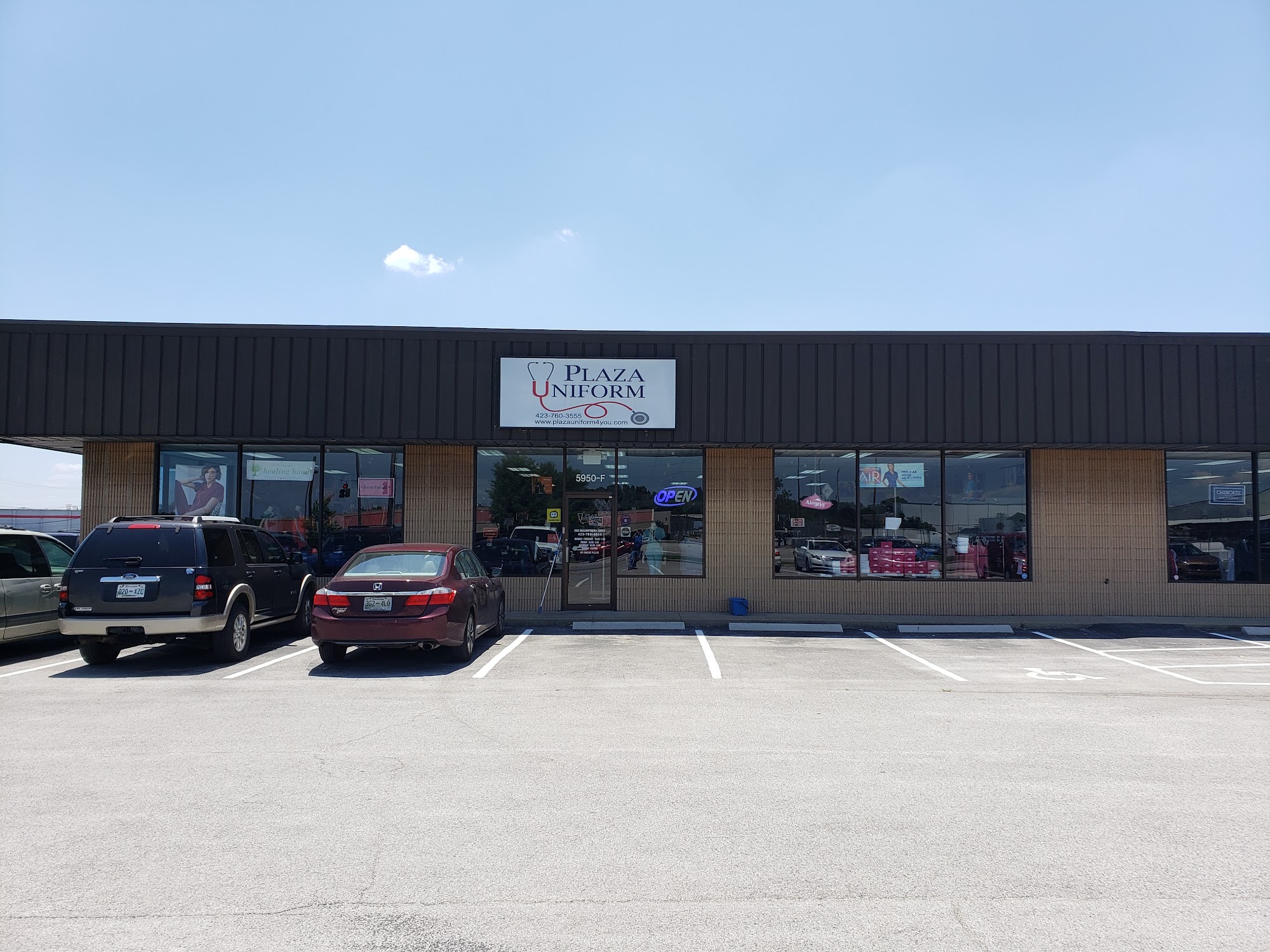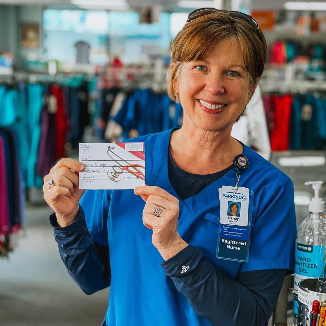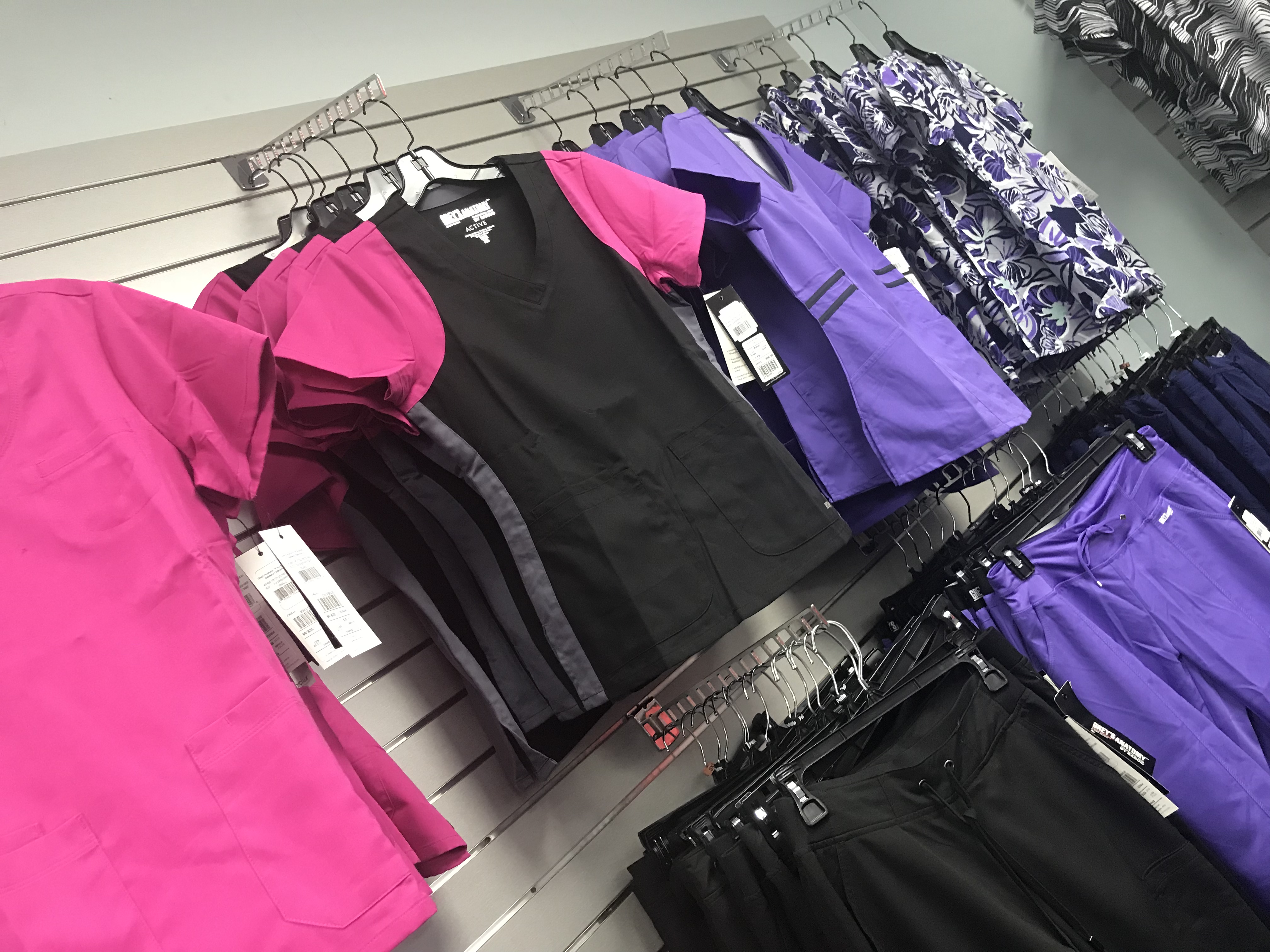 Plaza Uniforms is a deceivingly large store with a super large selection on the rack, including a huge section for men and seasonal scrubs. The staff is always very friendly, extremely helpful, and sweet, offering help with finding items and recommendations. They provide assistance with sizes and brands and can special order things. There is plenty of shared parking in the lot with easy access on and off the road.