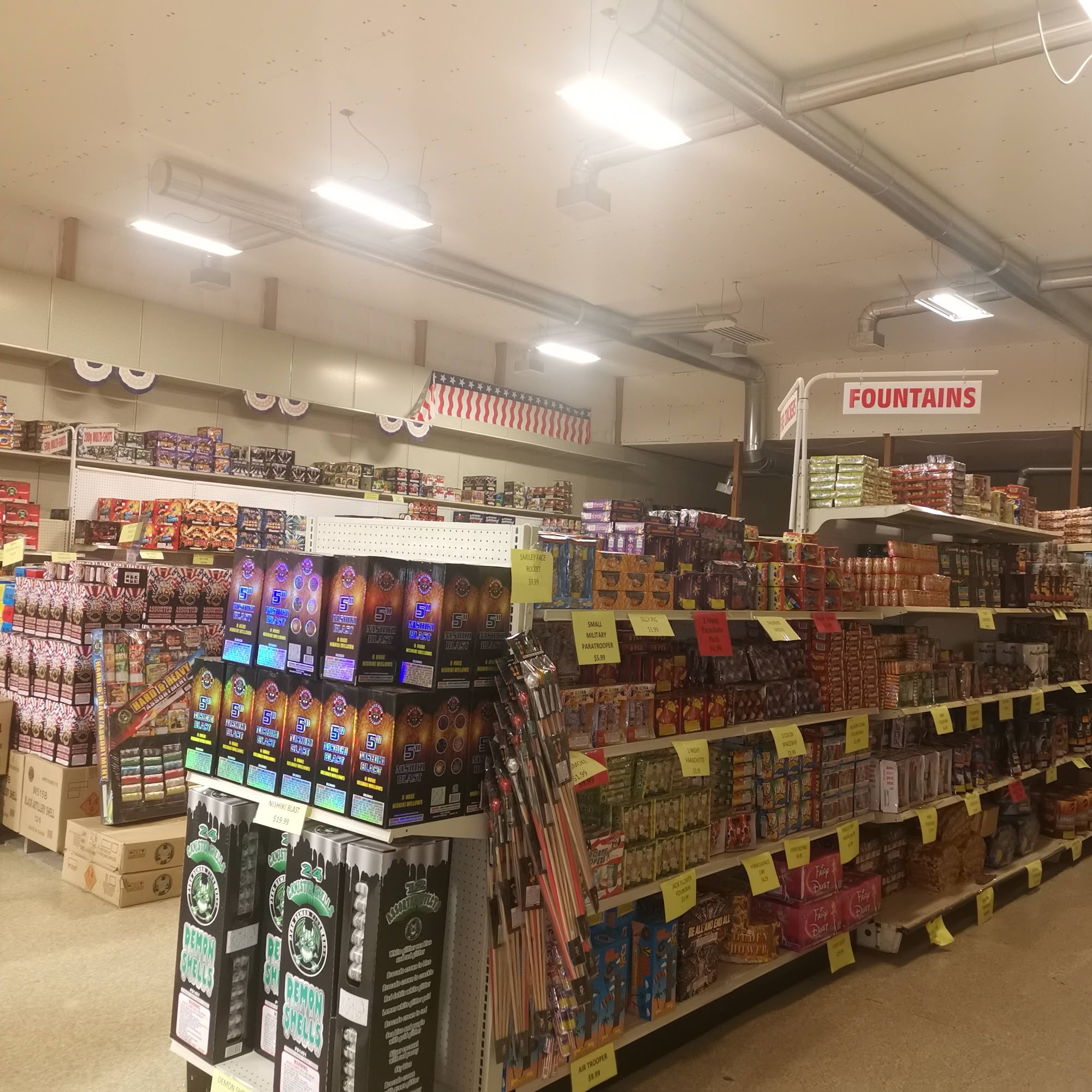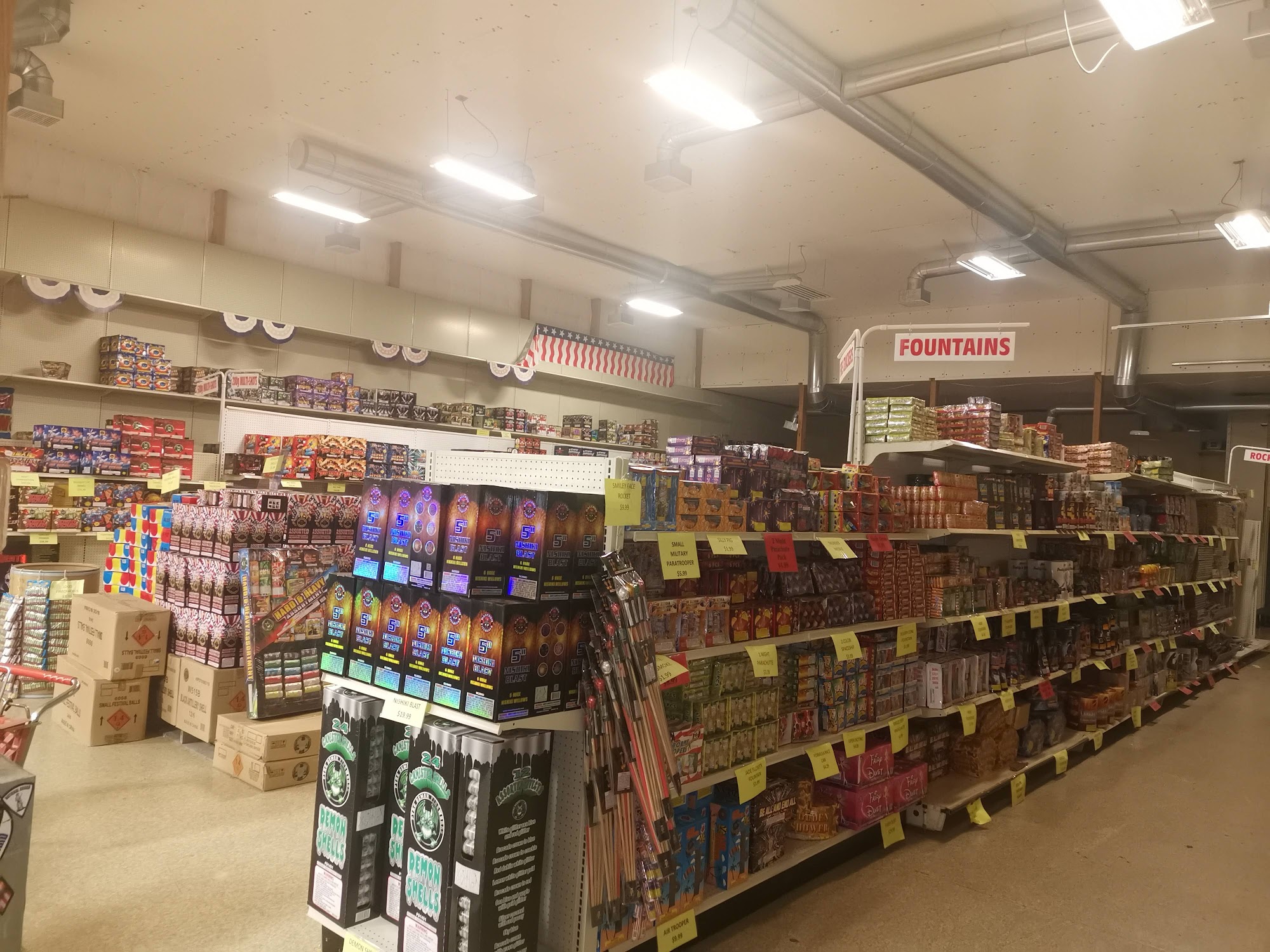 Wild Wilma's Fireworks offers a great selection of sparklers, fountains, single mortars, and small and large cakes, including discount cakes. The staff is helpful and knowledgeable, providing great recommendations and excellent service with a smile. They have fair prices, new stock, and not a single faulty firework. A video setup allows customers to scan a firework and see what it looks like. Shopping carts are available. With its amazing selection and great products, it is a definitive spot for fireworks.