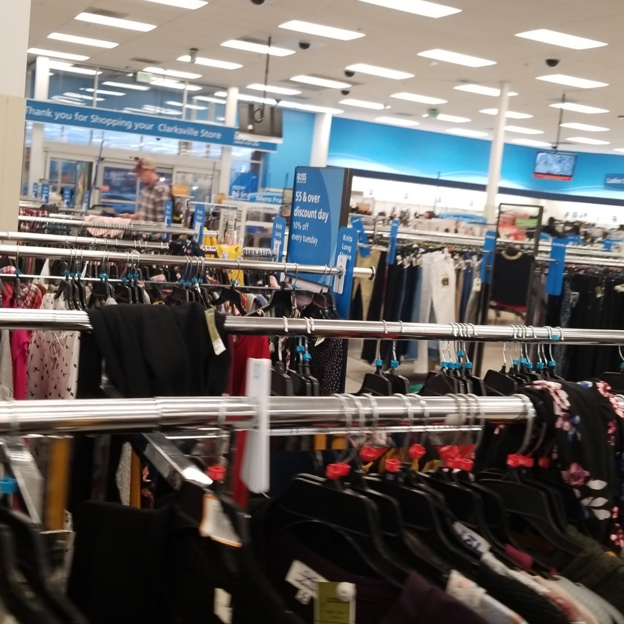 The store had the best brands and the latest fashions for family and home at 20% to 60% off department store prices. Store had cheap prices and a large selection of different items. Employees are nice and the customer service is great. The floor near the entrance is trashy and rugs are not folded neatly. But employees need to tidy up and stock shelves. A security tag is on every clothing item. A long line but cashiers are busy and out in no time. The store also had dog toys, a rug, gold balls and Christmas items.