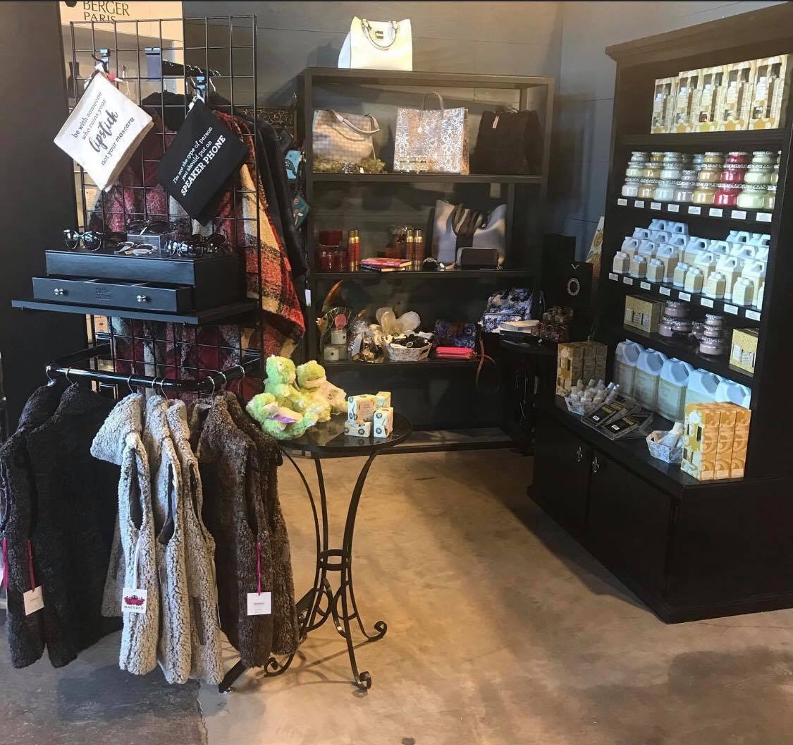 Decorative fragrance by Aromatique, Tyler Candle, and Lampe Berger; Jewelry by John Medeiros, Trollbeads, Kameleon, Gingersnaps, Silver Forest, Whispers, and others; Handbags by Coco & Carmen, CHALA, Vere, and others; various names in apparel; chocolates and other candies; inspirational book titles; various art and other home accessory items; EMBROIDERY and monogram service; and more!