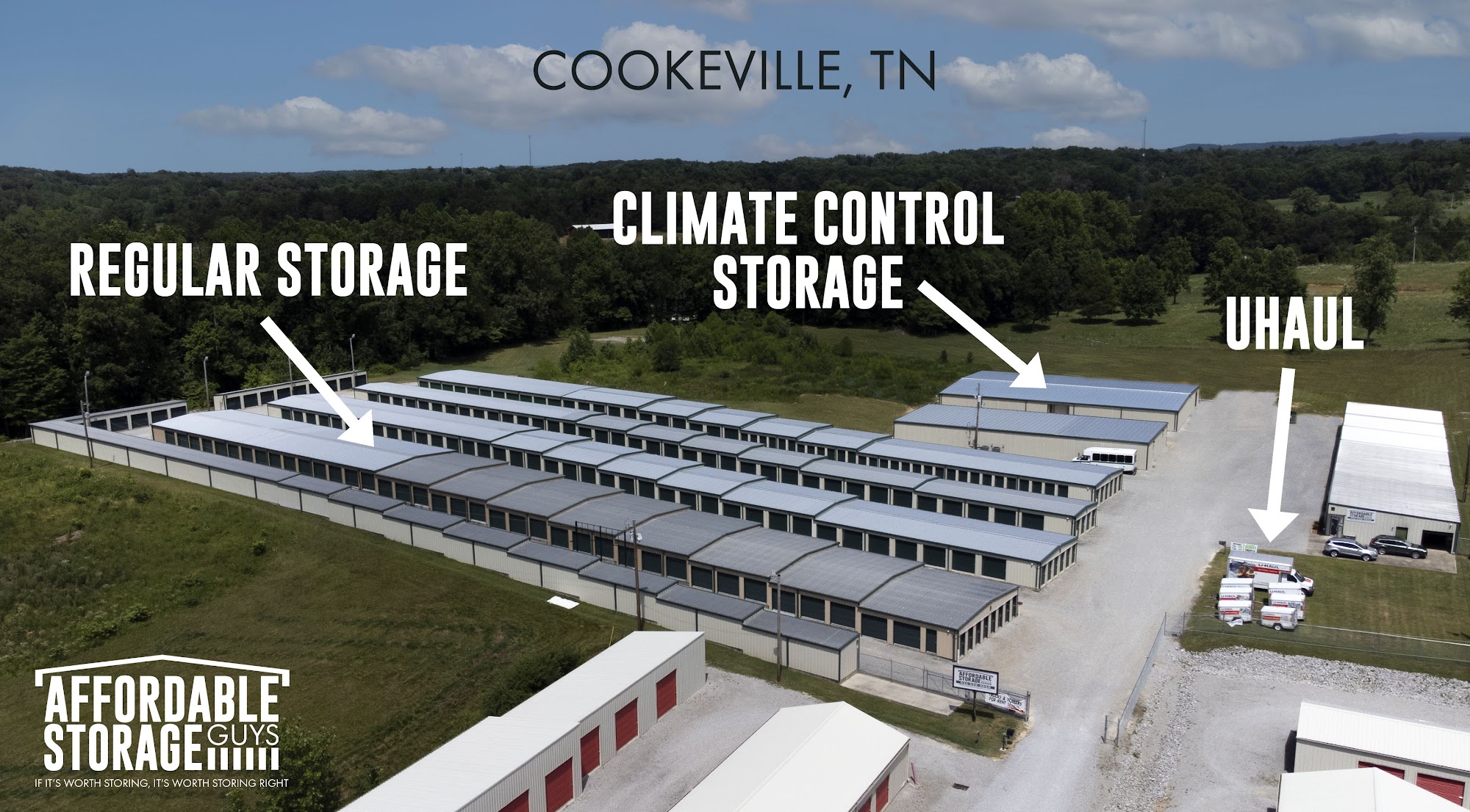 Affordable Storage Guys in Cookeville, Tennessee was added to the company portfolio in August 2018. Originally known as AAfordable Storage, this facility is located at 1999 Gainesboro Grade, Cookeville, TN 38501, just 2 miles from Tennessee Tech. Our new building project has been completed! This location now offers both Climate Storage and Non-Climate Storage units in a variety of sizes on a property that is fully fenced with electronic gate entry and camera system. All units are ground level for easy access. We allow for 24-hour gate access using your personalized code.