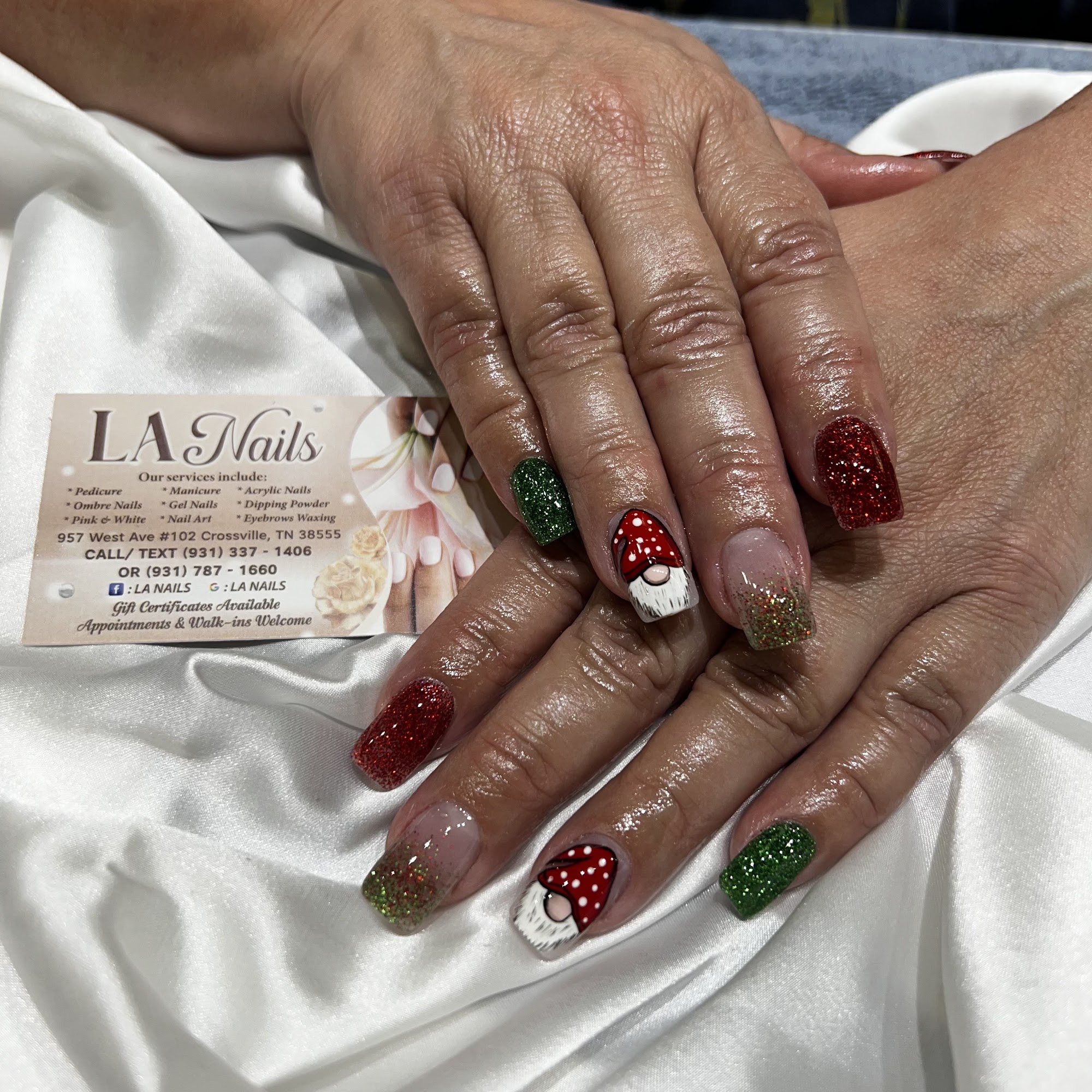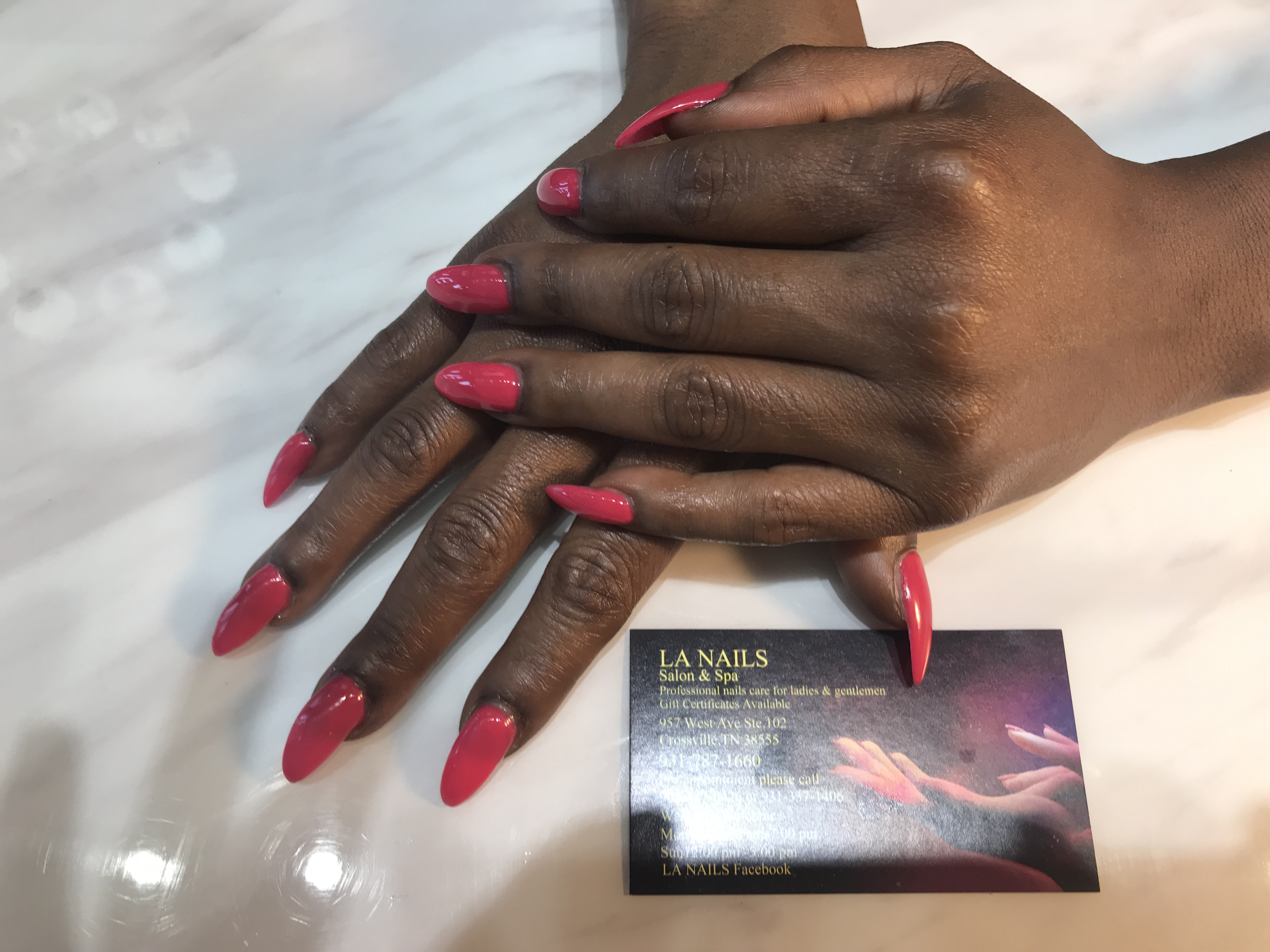 LA Nails is a family-owned business known for its friendly atmosphere and professional nail services. Customers frequently praise the exceptional work of Randy and Angel, noting their skill in executing both classic and intricate nail designs. Many clients report positive experiences, with some stating they have been loyal customers for years. The salon is recognized for its cleanliness and the welcoming nature of the owners. New customers have also highlighted their first visits as outstanding, with one mentioning the respectful treatment received while getting their feet done. Walk-ins are welcomed promptly, and the staff is noted for their helpfulness, especially when assisting customers with children. Customers have expressed satisfaction with the nail designs, often achieving results that match their reference photos perfectly. Angel is particularly celebrated for her amazing work, making LA Nails a favorite destination for many. Customers have shared that Angel consistently delivers perfect nails, including fun and spooky Halloween designs with ghosts and pumpkins that make clients smile. The staff is described as very nice and good at what they do, making the experience enjoyable. Randy is praised for taking clients right in, performing thorough pedicures with sanitized tools and special attention to troubled spots. The relaxing environment and friendly treatment make customers feel like family, leaving very happy with their nails. Overall, LA Nails remains a top choice for quality and friendly service.