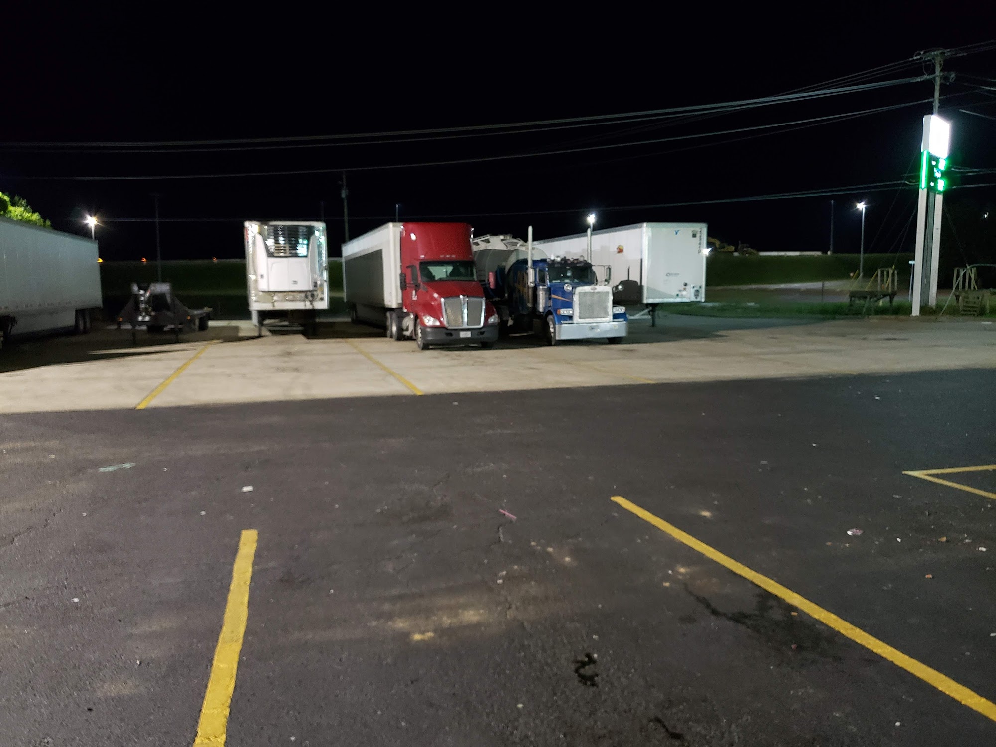 Decent little stop. Space for 6 or 7 trucks to park, depending on how courteous everyone is. Parking is $10. Pretty good beer selection, if you're so inclined. Sucks to pay for parking, but good alternative if the Love's is full.