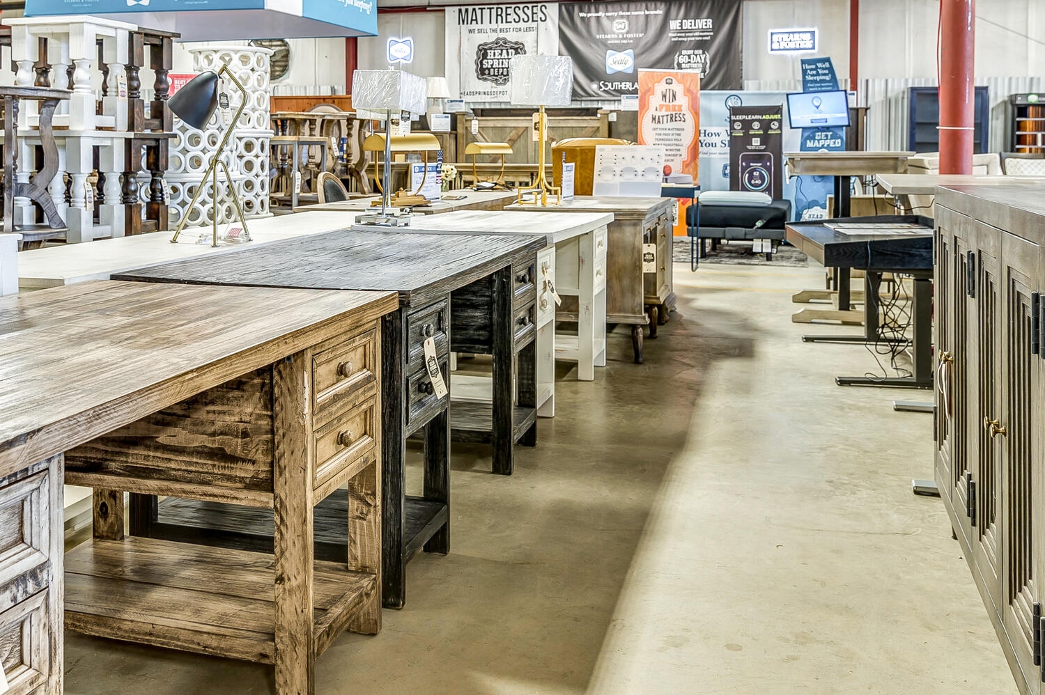 Head Springs Depot is a family-owned and operated business that focuses on providing high-quality, stylish products to customers at the best possible prices. The business works directly with manufacturers to offer a range of products, including mattresses, solid wood furniture, and home decor, in a variety of styles such as farmhouse, rustic, industrial, mid-century modern, and traditional. Customers have praised the business for its excellent customer service, with employees who are knowledgeable, helpful, and not pushy. The business also offers complimentary design services, great financing options, and affordable local delivery starting at $69. With a 17,000 square foot warehouse in Downtown Franklin, TN, Head Springs Depot is stocked with fresh and unique items and furnishings, making it a go-to destination for those looking to elevate their living spaces.