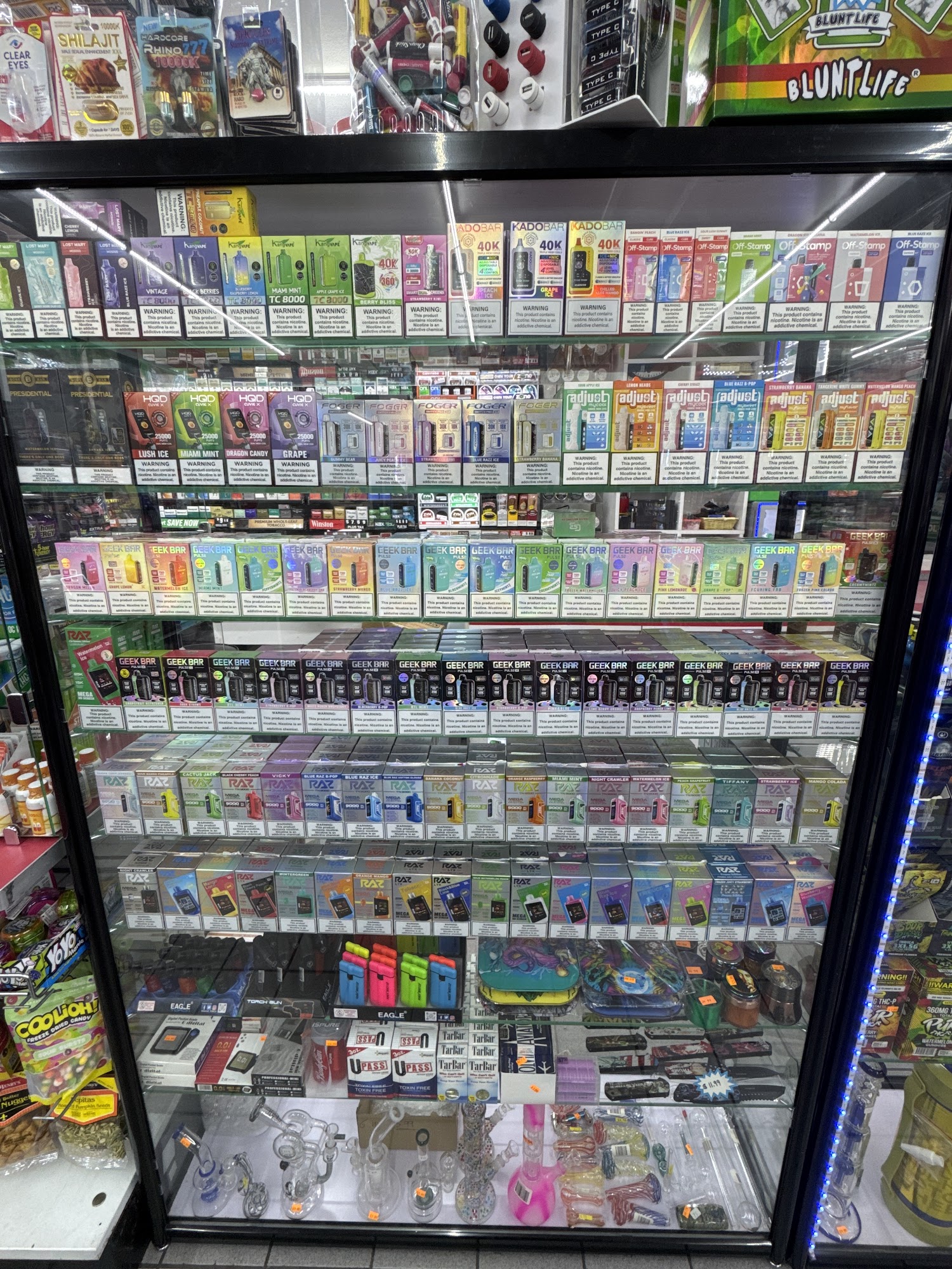 Hop’In is a convenience store and gas station on Kingston Pike in Knoxville. It is known for being very clean, well-lit, and organized. The store offers a wide selection of products, including quality gas, vapes, THC-A, gummy treats, pre-rolled joints, Galaxy Gas, snacks, drinks, and much more. They have expanded their merchandise and carry many brands that are hard to find at bigger chains. The staff provides consistently great, friendly, and quick customer service. The owners are proactive in maintaining the store’s image, both in the store and online. They also accept EBT. Outside, there is a Hispanic food truck for delicious eats. Every week, the store gives away a free gift to its regular customers. Customers report an excellent experience, noting it is a great place to stop for affordable, quality products and gas.