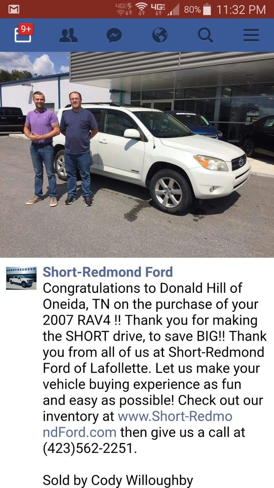 Short-Redmond Ford of LaFollette, LLC is a Ford auto dealer serving the greater La Follette, TN area. The dealership offers a wide variety of new and used cars, Ford incentives, service specials, and Ford parts savings. Customers have praised the dealership's easy and quick buying experience, friendly staff, and willingness to go the extra mile to ensure a positive experience. Specific employees mentioned in the reviews include Ethan Bolling, David, Caleb, Rusty, and Tyler King, all of whom were described as helpful, knowledgeable, and dedicated to making the car-buying process as smooth as possible. Overall, Short-Redmond Ford has earned a reputation for providing excellent customer service and a hassle-free car-buying experience.