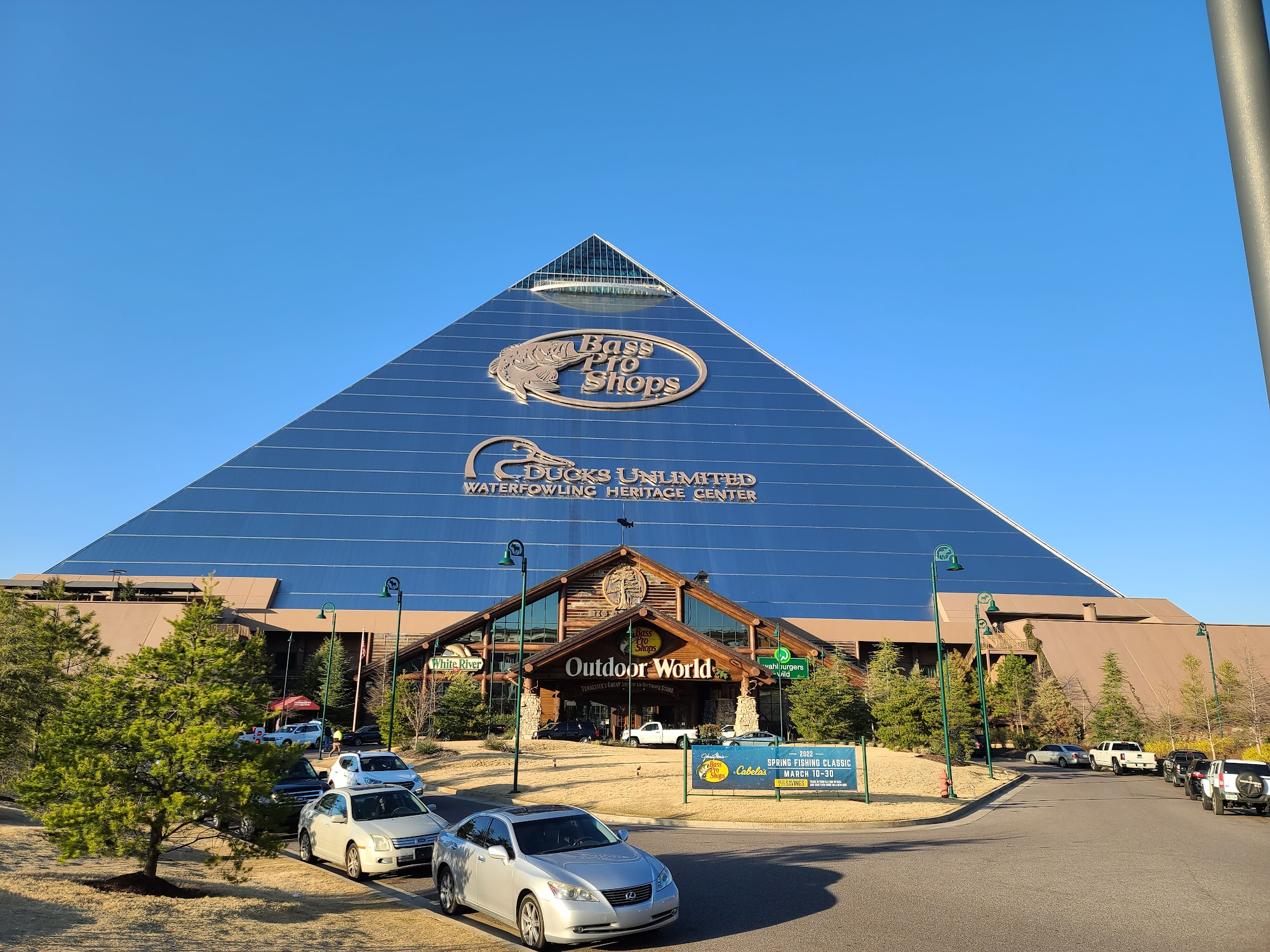 Bass Pro Shops/Cabela's Boating Center at the Pyramid in Memphis is a unique outdoor adventure destination that offers much more than just a boat dealership. It is a massive pyramid structure housing a boat showroom, an array of America's Favorite Boats, the world's largest Mercury® outboard retailer, and a proud retailer of TRACKER OFF ROAD™ ATVs, UTVs, and TRAILSTAR utility trailers. Visitors can explore the indoor fake bayou swamp, enjoy delicious food at the panorama platform restaurant at the top of the pyramid, and even stay at the attached Big Cypress Lodge. The pyramid itself is a stunning architectural marvel, and the overall experience is truly one-of-a-kind, with various activities and attractions to suit all outdoor enthusiasts. Whether you're in the market for a new boat, ATV, or just seeking an unforgettable adventure, Bass Pro Shops/Cabela's Boating Center at the Pyramid in Memphis has it all.