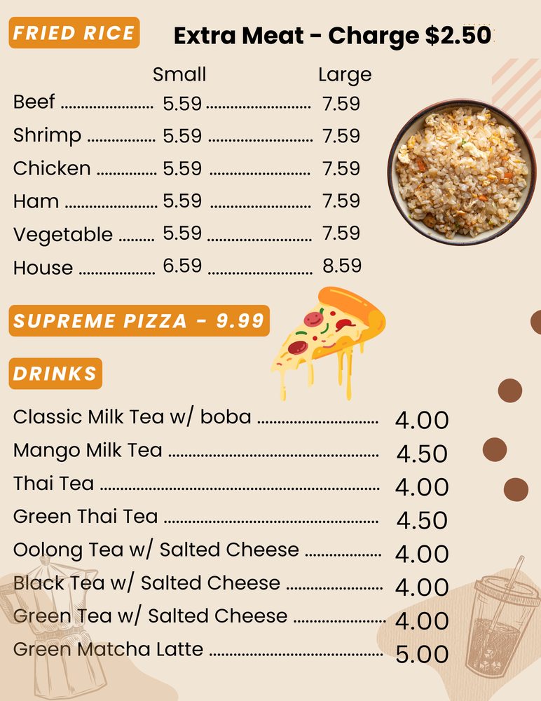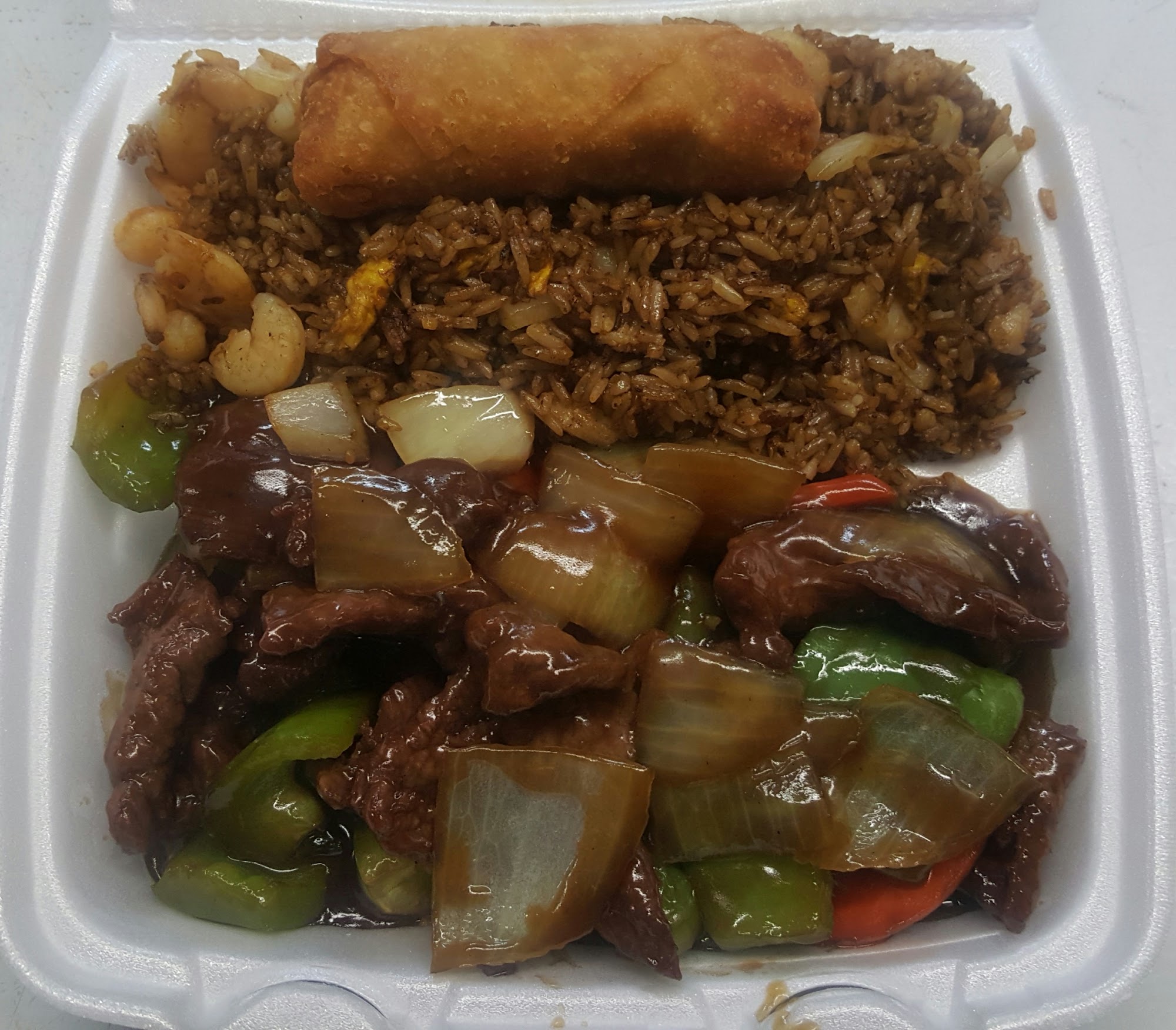 Horrible,oily rice no flavor chicken dried out and egg roll under cooked,my stomach turned while at work and it's the worst feeling,they charge you too much for sum slapped together and food that sets out all day before selling it,gross.