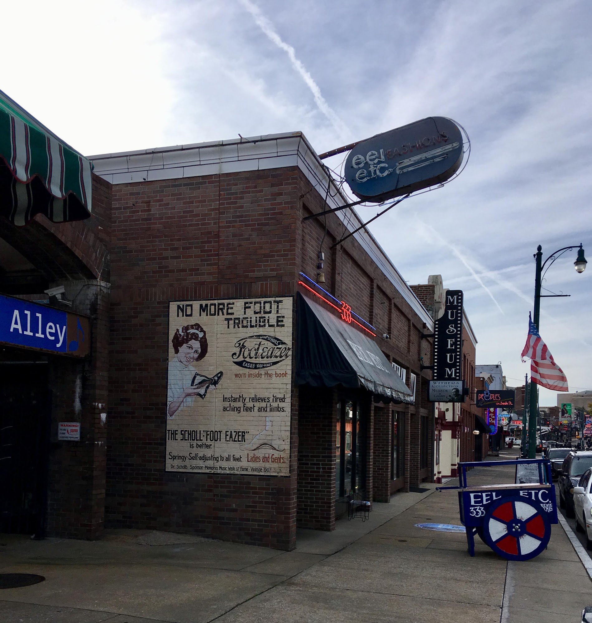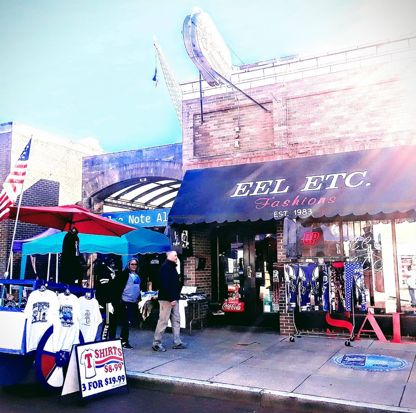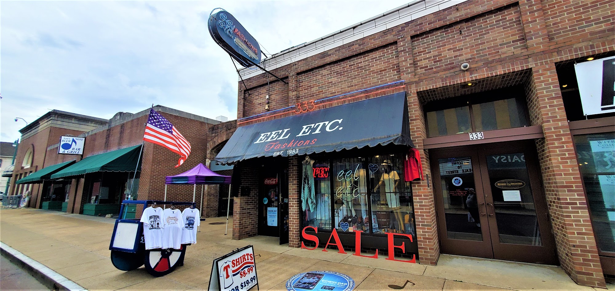 Eel Etc. Fashons is a great shop on Beale Street. The owner is extremely nice and has a lot of knowledge. The shop has a very eclectic selection of clothes. Customers receive professional advice and fantastic service. The shop is considered one of the greatest and is highly recommended. It has a great environment and unique items, such as a cool piece and a really nice sweatshirt with a very cool design.