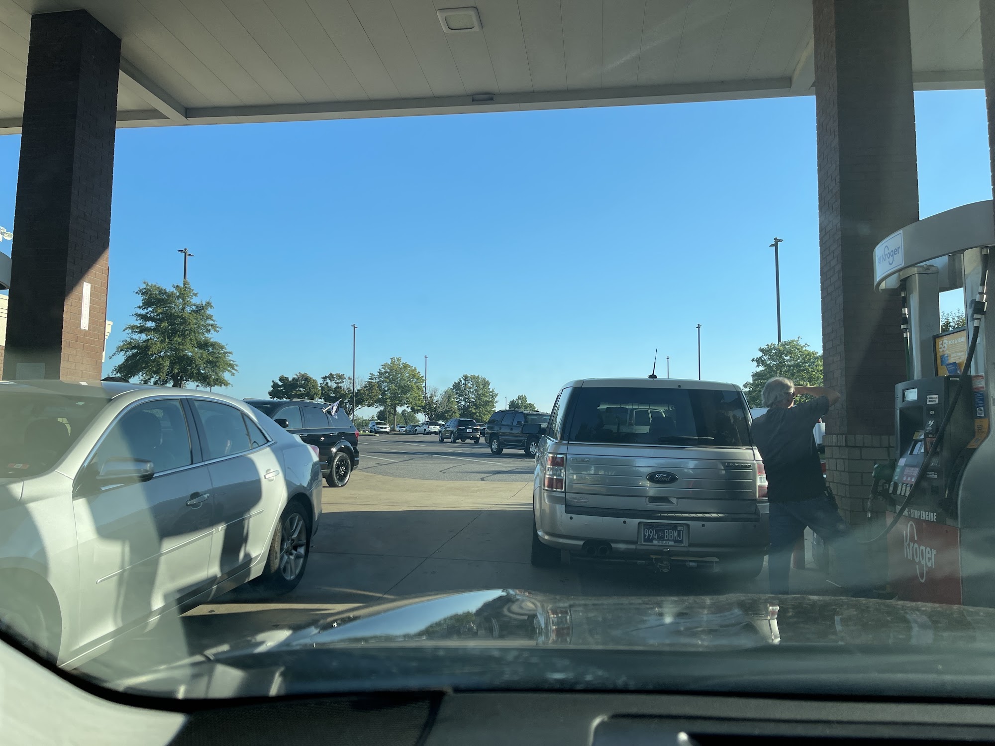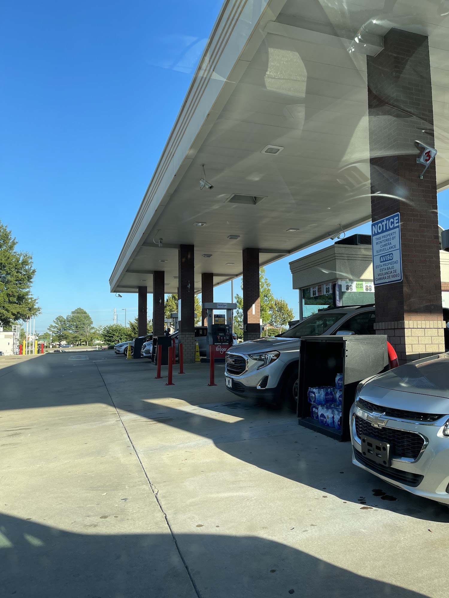 This is a good position for a gas station. There is a lot of competition for your service. We shop at this Kroger often so we use their point system. Getting in and out is a major pain though. Usually busy so bring your patience.