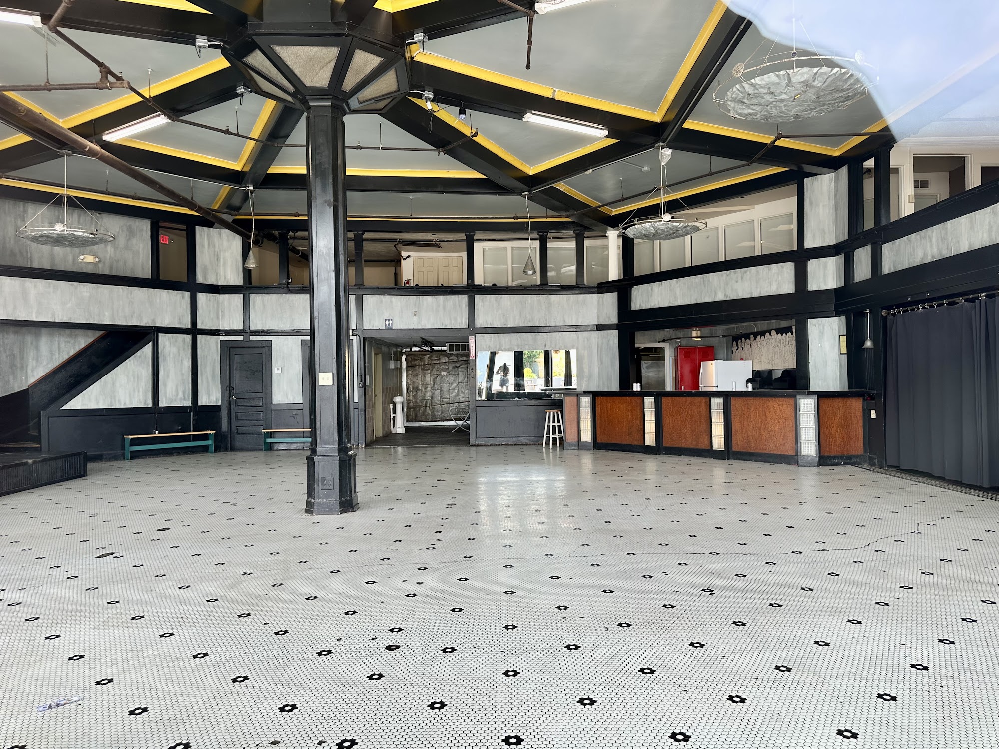 "The Palace" is the "perfect fit" for just about any event. Our unique floor plan features an over 2500 sq. ft. octagonally shaped 1st floor ballroom, with a mezzanine over-looking all the action below. We can take over 200 for a full sit-down dinner, over 300 for cocktail parties, and 400+ for standing-room only events or concerts. However, even small events have a great feel because of the unique architecture of our building.