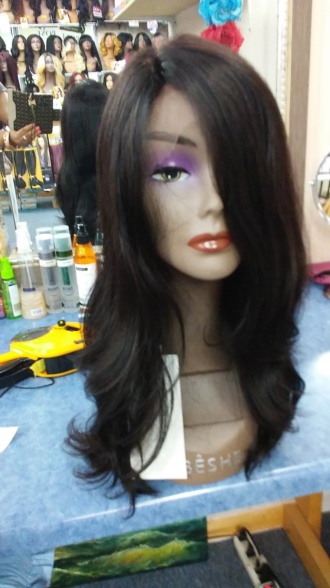 The man was nice and very helpful in finding this wig but I just felt a tad uncomfortable because he wouldn't let me look at the wigs by myself. I also find it inconvenient that you can't try on the wigs or return them if they don't fit.
