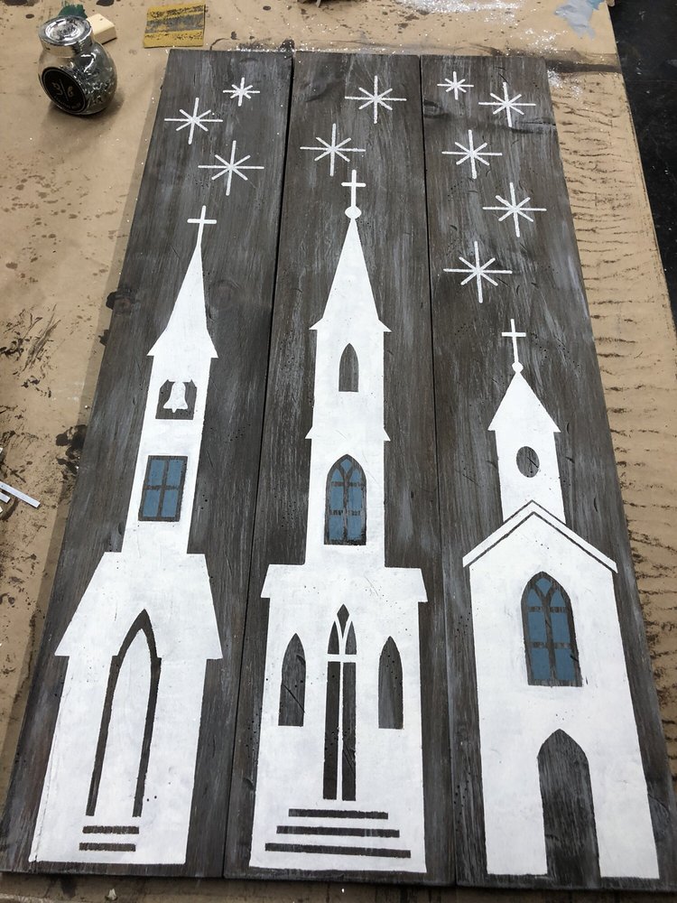 Board & Brush Creative Studio is a popular destination for those seeking a fun and creative experience. According to the reviews, the studio offers a welcoming atmosphere and a hands-on approach to DIY projects. The staff is described as very nice, helpful, and knowledgeable, guiding customers step-by-step through the process and offering constructive suggestions to ensure a successful outcome. The instructors, such as Carey and Blake, are praised for their expertise and for providing the freedom to customize projects to individual preferences. The studio is well-organized, spacious, and clean, catering to groups of various sizes, from couples celebrating an anniversary to larger groups from churches. Customers appreciate the provided materials, including stencils, paints, and tools, which make the experience accessible even for those with limited artistic skills. The reviews highlight the studio's ability to create a lively, collaborative environment where customers can unleash their creativity and produce personalized wooden art pieces. Customers consistently express their satisfaction with the final results and eagerness to return for more experiences at Board & Brush Creative Studio.
