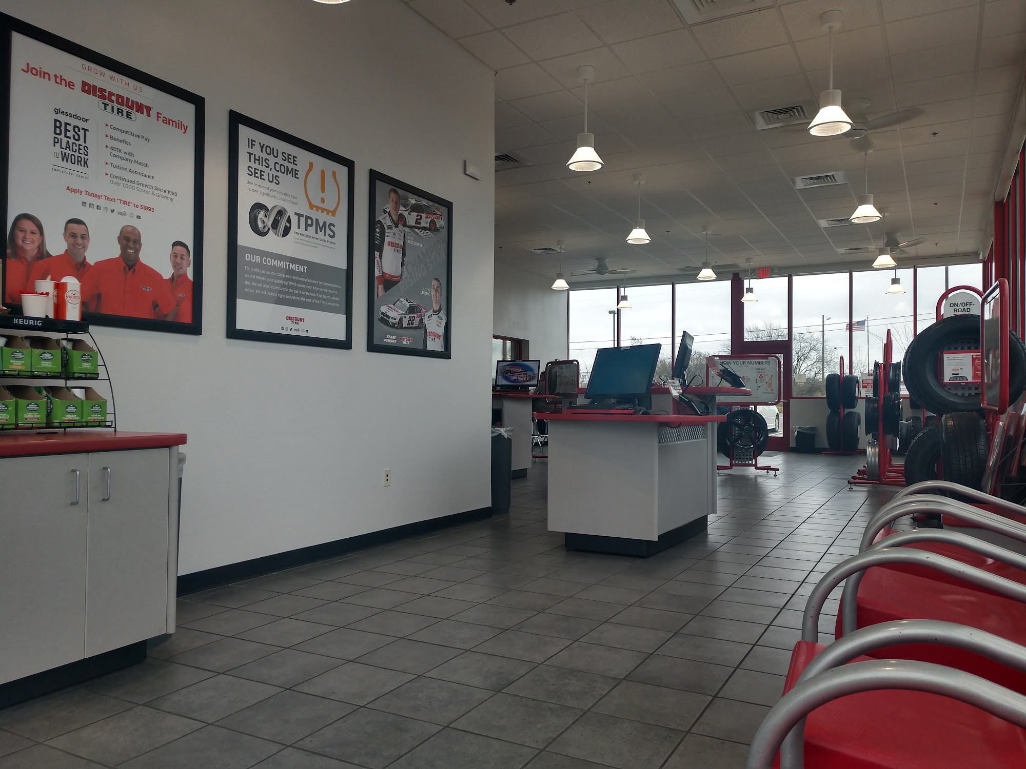 Best service Ive ever gotten from a discount tire location. Atticus was amazing at the front desk and they got us out in 30-45 minutes. My main location from now on for sure