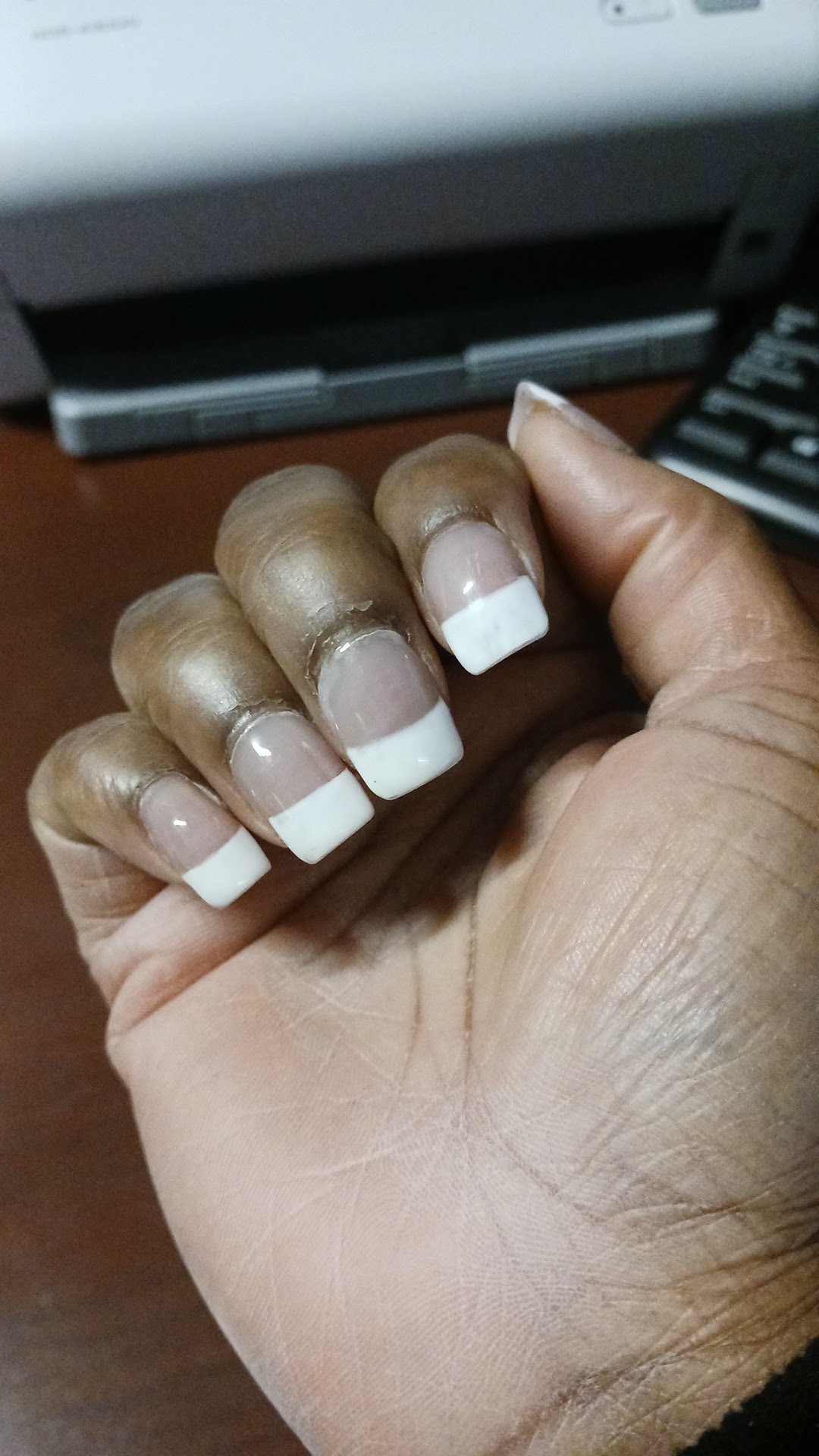 Requested style: I requested blue an pink tips of sort nqile I love them I would recommend to get ur nails done by the girl the man is to rough but she is so good