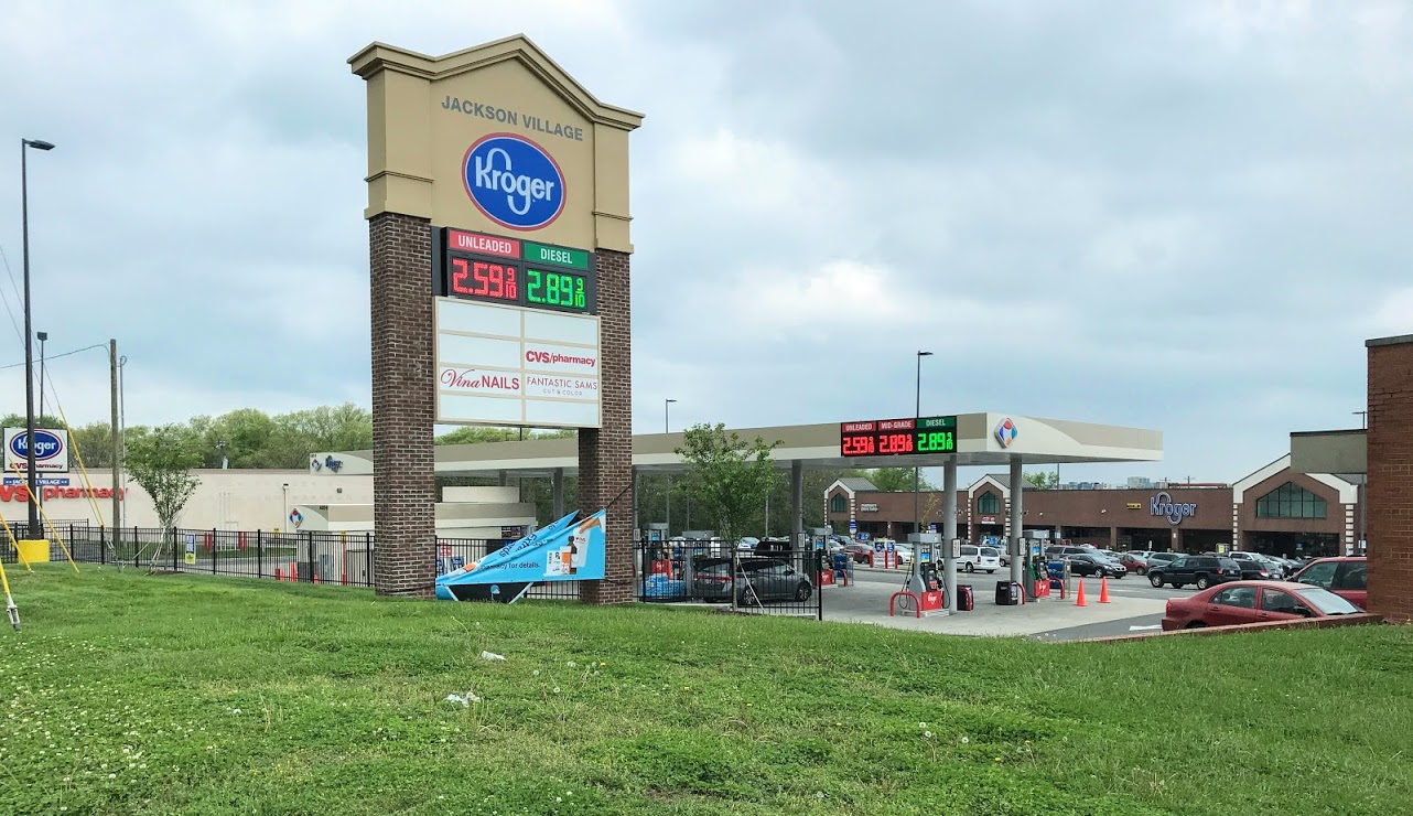 Jackson Village is a clean and attractive shopping center located at the corner of Shutes Branch and Lebanon Road. It features ample free parking, with Kroger and CVS as anchor stores. The Kroger is well-liked for being clean, well-stocked, and friendly, with excellent meat, deli, and fresh produce sections. The center also includes a gas station, restaurants, personal service facilities, a laundromat, an auto parts store, and a bank. Access is easy with patient timing at the light. A noted drawback is poor drainage in the parking lot during rain. Some advise visiting in daylight hours as a safety precaution.