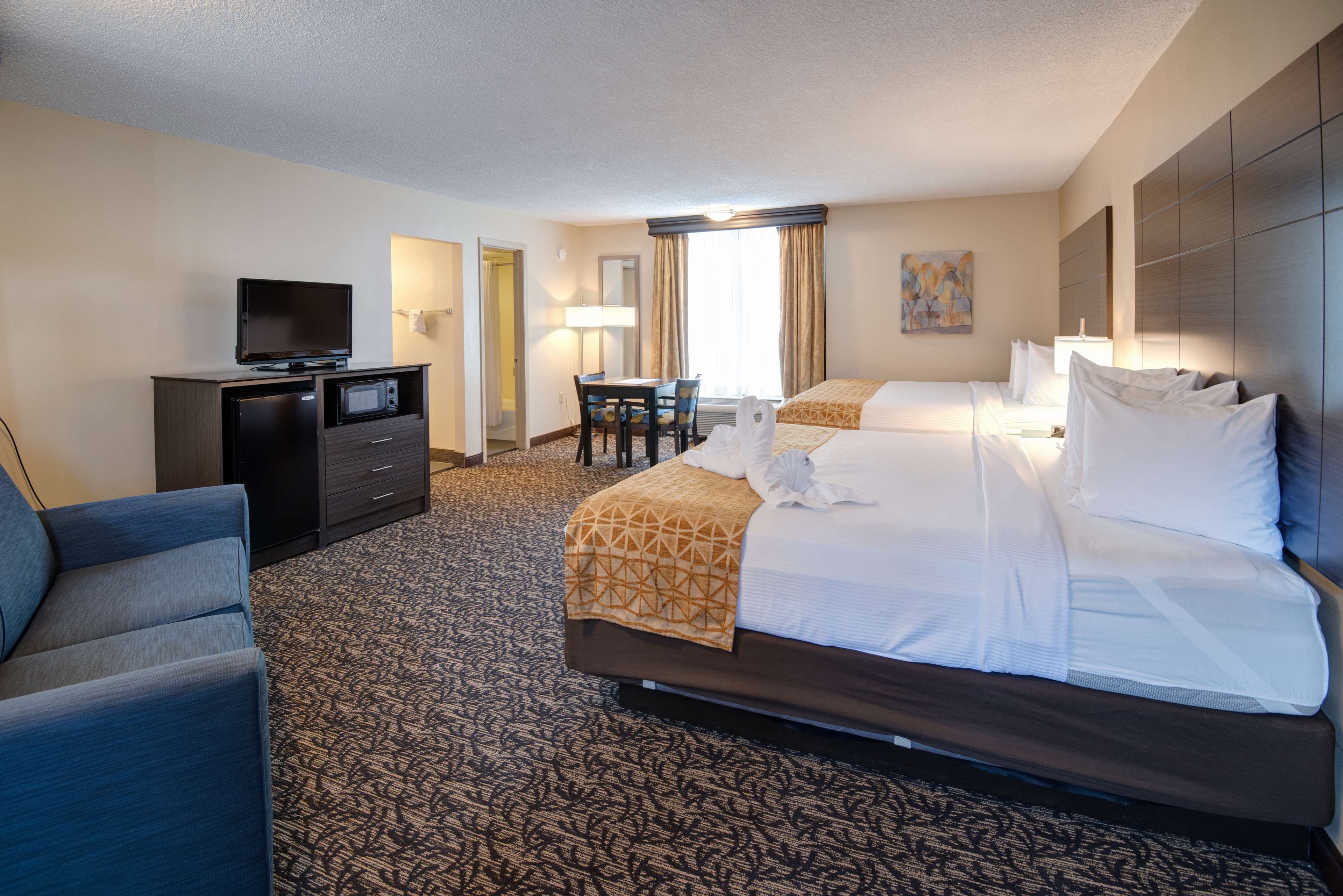 Best Western Toni Inn is a convenient and comfortable hotel located in Pigeon Forge. Guests appreciate its clean rooms, with some noting that the floors are well-maintained, and the rooms have essential amenities like a mini fridge and a functioning air conditioner. The hotel offers a good value for the price, especially with its indoor and outdoor pools that feature hot tubs, which are highly enjoyed by families and kids. The pools add to the appeal, especially since many hotels no longer have hot tubs. The building itself is a bit dated, and some guests mention limited plug-ins for electronic devices and a somewhat hard mattress, but overall, the rooms are clean and well-maintained. The breakfast is basic but tasty, though some wish for stronger coffee. Its location is close to activities and restaurants, making it a convenient choice for visitors. Despite minor issues, many guests find it a reliable and pleasant place to stay, especially valuing its cleanliness and the availability of pools.