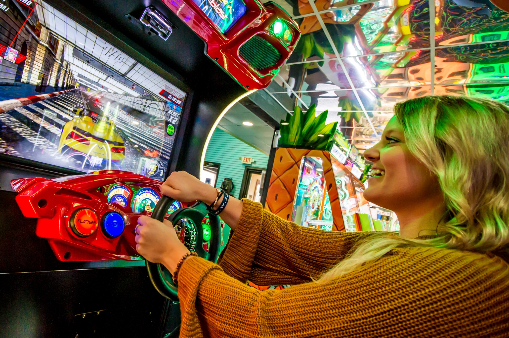 Decent games. The arcade is not that big but youll get what you need. Go karts where fun.