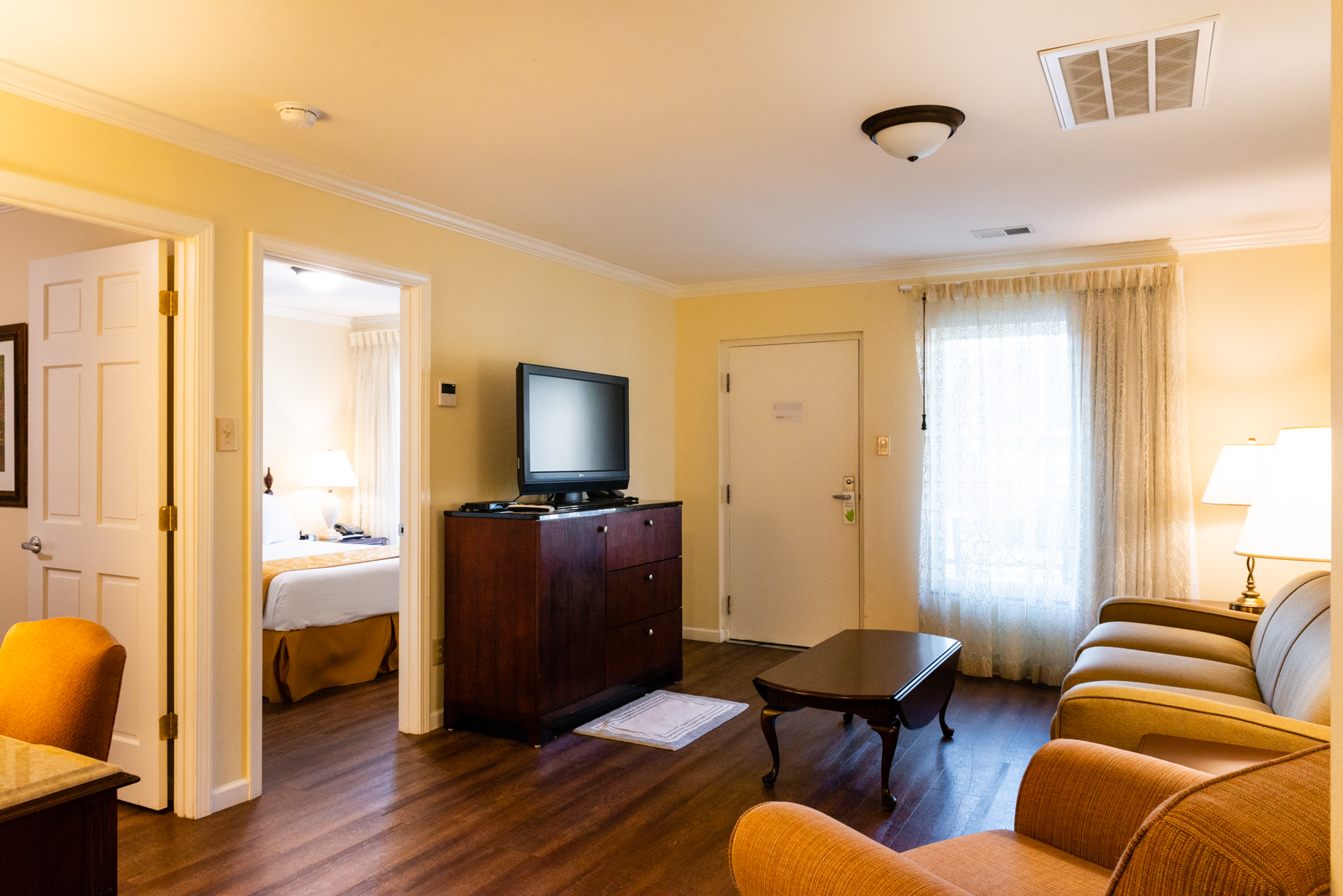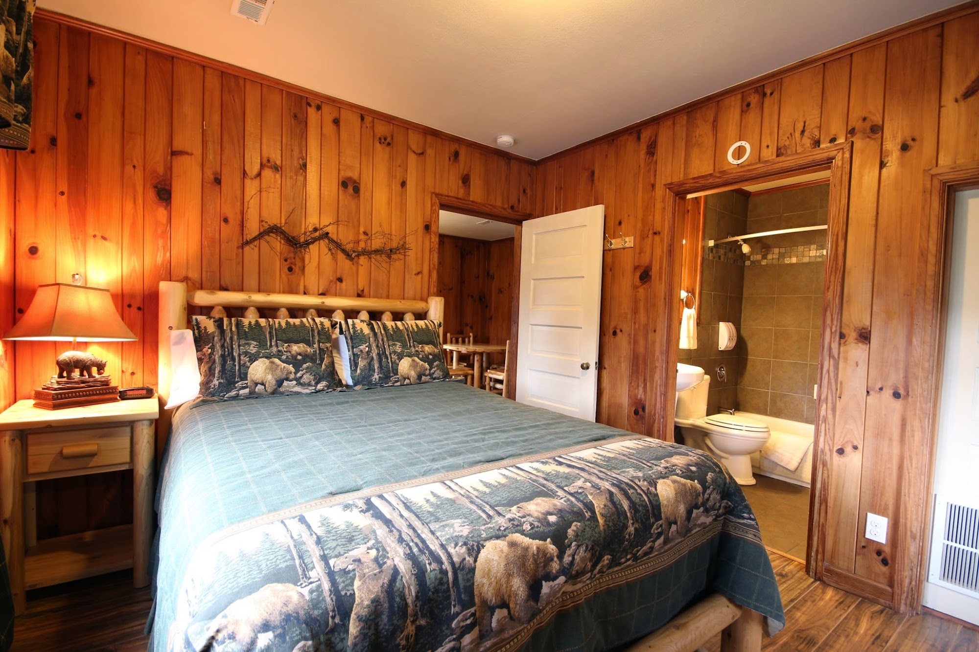 Very close to the entrance of the park, the room me and my girlfriend stayed in was updated up till the bathroom, shower was fine but you could tell it was old and could use a update and a little bit of work, mattress maybe have been a spring type but still slept fine.