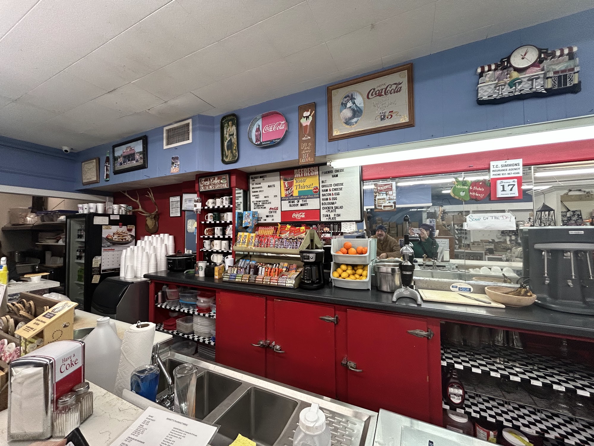 Bennett's Pharmacy is a third generation family business with hometown charm. It is a friendly and professional place that feels like home, offering special care. It is much more than just a drug store, with a complete line of vitamins, wound supplies, braces, and aids for daily living. The pharmacy processes prescriptions and administers vaccines. It also features an old time soda fountain and lunch counter. The menu includes the famous non-alcoholic "Bloody Marty," milkshakes, homemade chicken salad plates, tuna salad, bologna sandwiches, BLTs, and desserts. Customers can enjoy food and drinks while shopping the gift section. The staff is always helpful, providing exquisite flavors and southern hospitality, likened to stepping back in time.