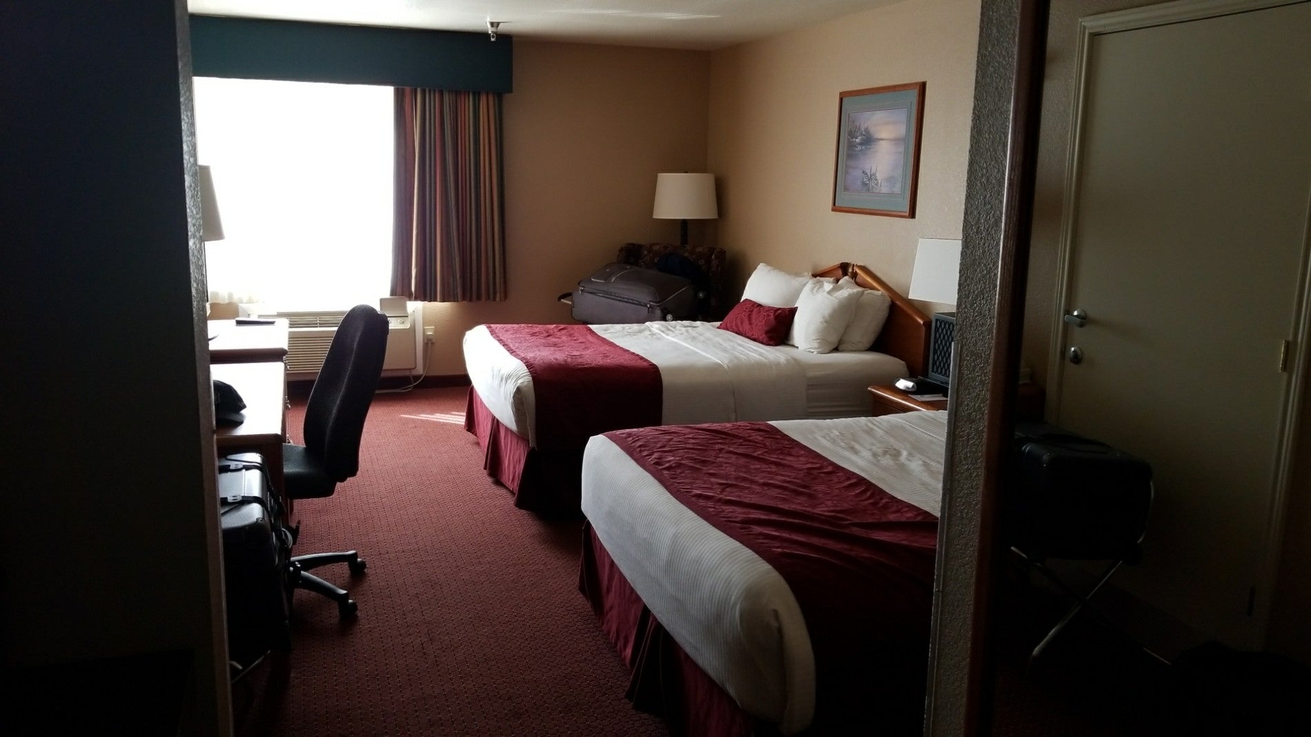 Not a bit of chipped paint or pealing wallpaper. Not a spec of mold in the bath which one often finds in hotels costing twice as much. When passing through Abilene again, this will be my stop for a clean room at a reasonable price.