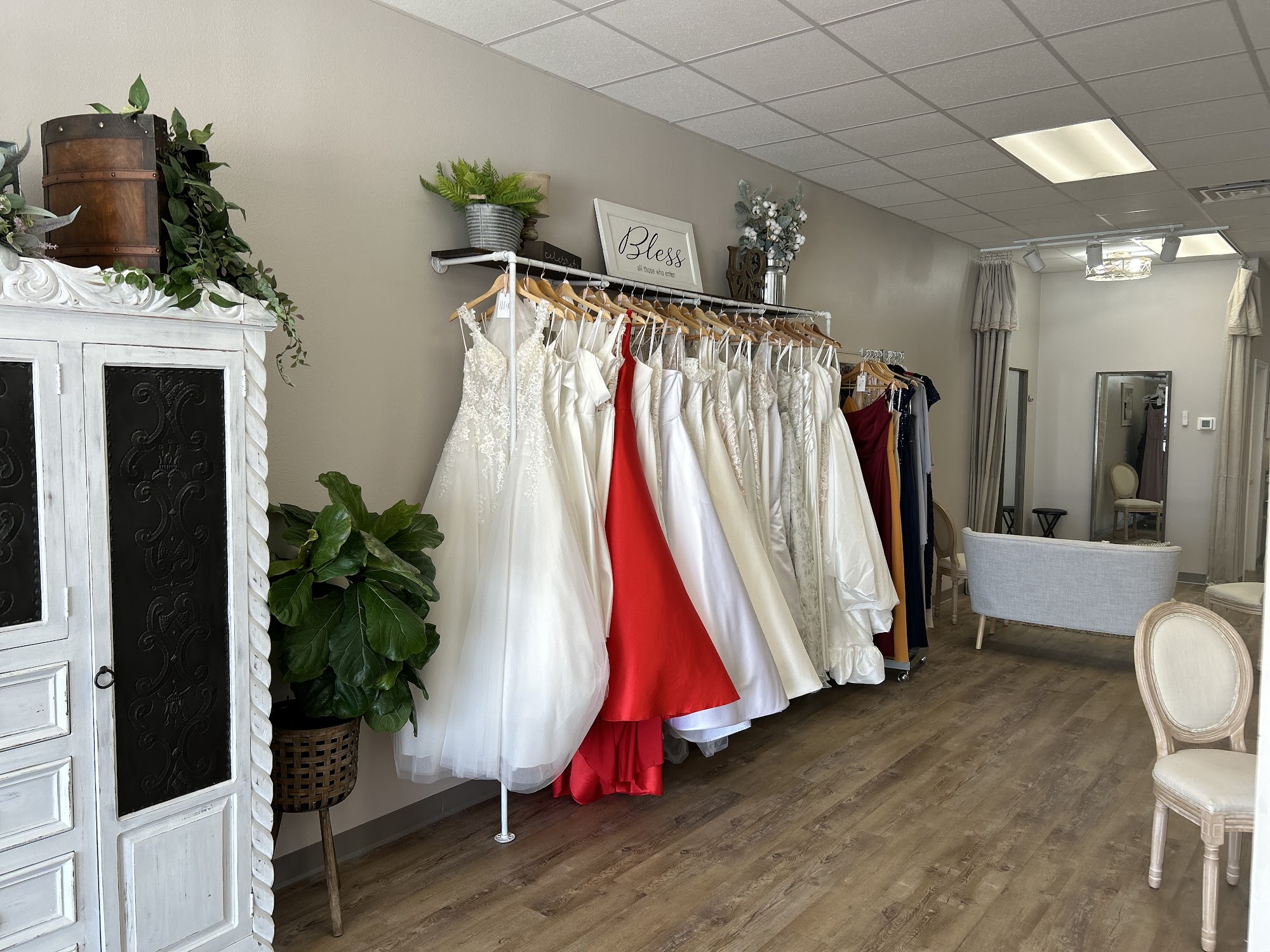 Find the dress of your dreams at Beyond Blessed Bridal, Abilene's premier bridal boutique! Since opening its doors in April 2022, Beyond Blessed Bridal has been helping brides discover the perfect gown for their special day. Step into our welcoming space and explore a stunning collection of wedding dresses. With a variety of styles and sizes to choose from, every bride is sure to find a gown that reflects her unique vision, whether it's a classic fairy tale or a contemporary masterpiece.