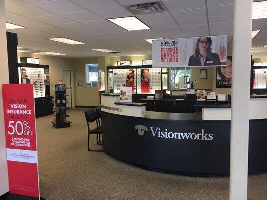 I enjoy picking out my glasses at Visionworks. They have a large selection of glasses and a very helpful staff.