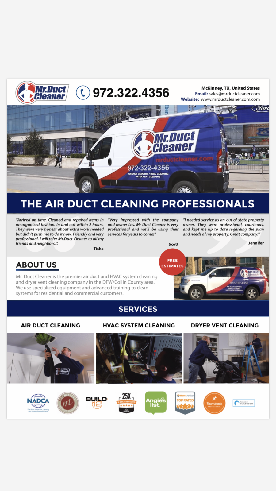 The crew was very polite and communicated well! I had a general duct cleaning done. The professionalism was outstanding!