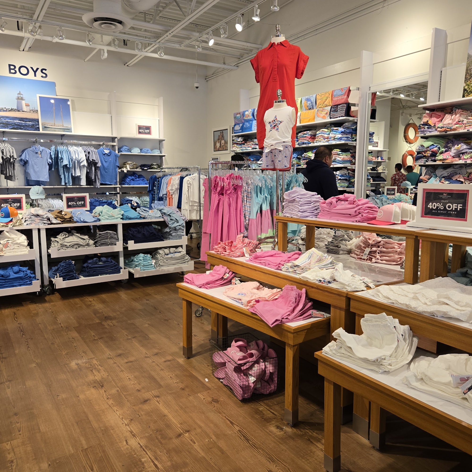 Vineyard Vines Outlet offers an outstanding shopping experience characterized by exceptional customer service and high-quality clothing. The store is well-organized and features a welcoming atmosphere, making it easy for customers to find what they are looking for. Staff members, including a knowledgeable manager and helpful associates, are noted for their friendliness and dedication to assisting shoppers. Customers consistently mention the warm greetings and attentive service they receive, with employees going above and beyond to ensure satisfaction. The store's selection, particularly its seasonal whale tees, is highly appreciated for its quality. Overall, Vineyard Vines Outlet is recommended for anyone seeking stylish clothing and a memorable shopping experience, thanks to the commitment and passion of its staff.