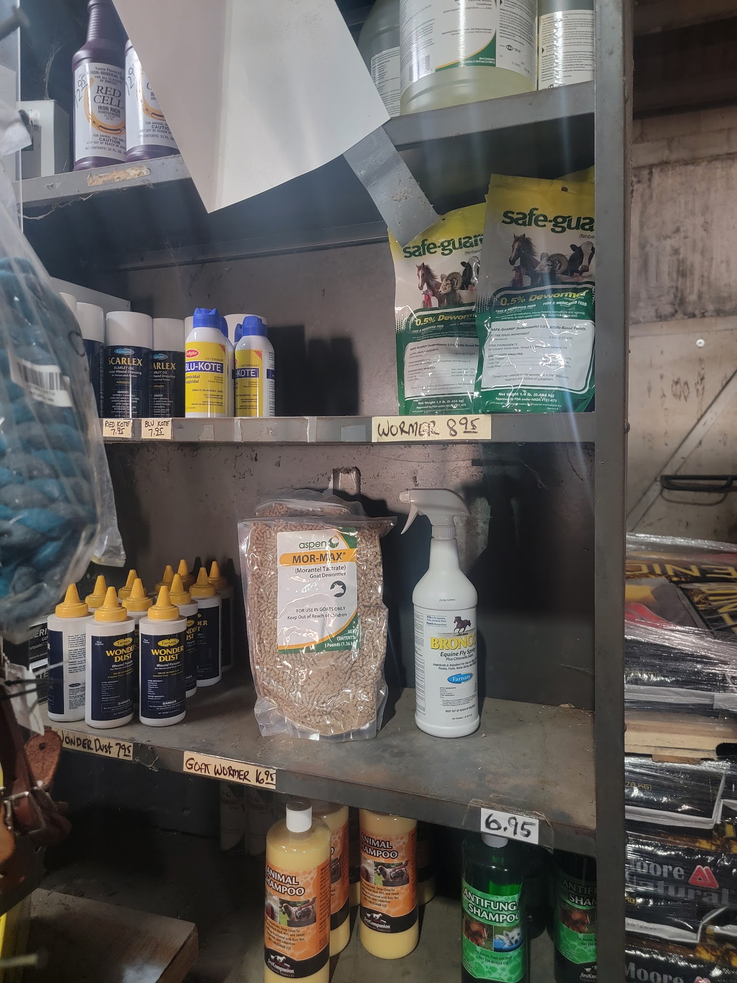Last Roundup Feed Store is a rustic, no-frills feed store with bare floors and no air conditioning. It caters to customers who don't care about frills and just want feed for their livestock, horses, dogs, cows, goats, and chickens. The owner is extremely nice, and the prices are much lower than other stores, with a discount for cash. They may not have everything but will recommend a good alternative.