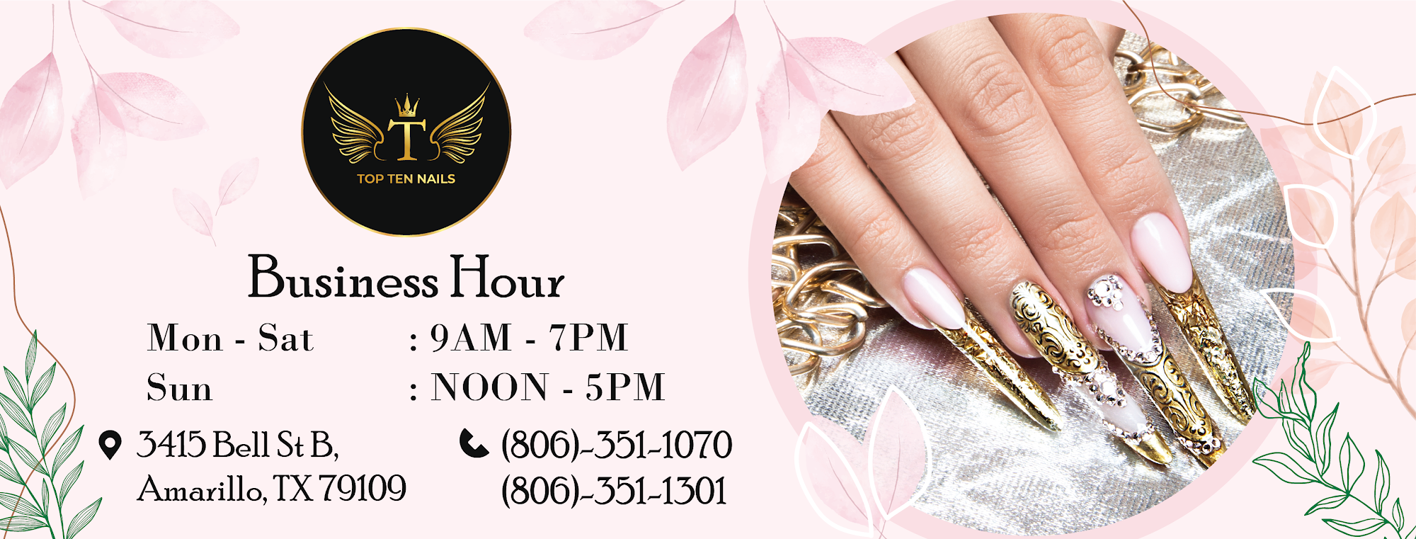 Top Ten Nail & Spa provides clients with nail services from professional, friendly, and patient nail technicians. Creating a relaxing and worry-free environment is the top of our priority. Clients from all ages are welcome and catered to. Our services range from manicures, pedicures, waxing, lash extensions, and facials.